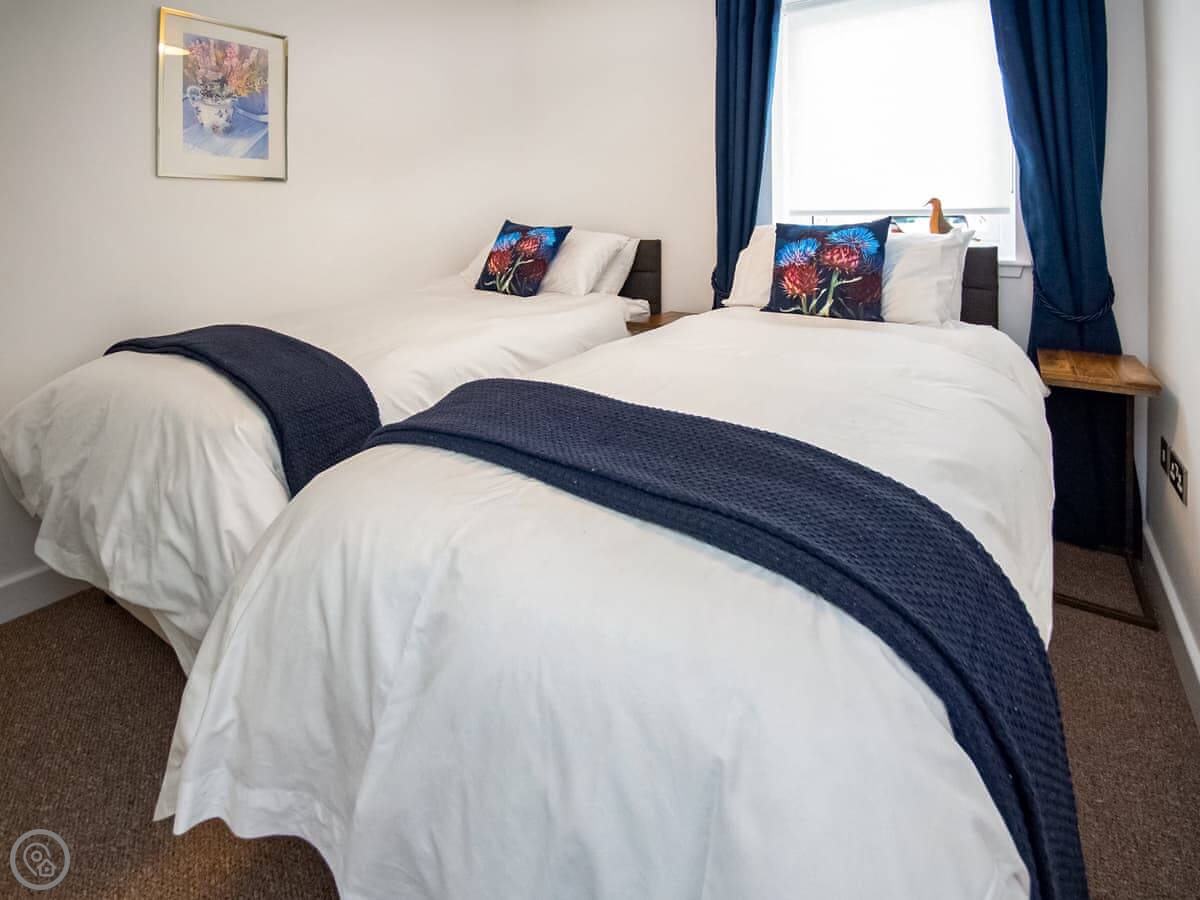 This is Thistledown, in Dornoch. It sleeps four, with two bedrooms. Each bed is a super king but they can be split into twins if you ask beforehand. There's one bathroom.