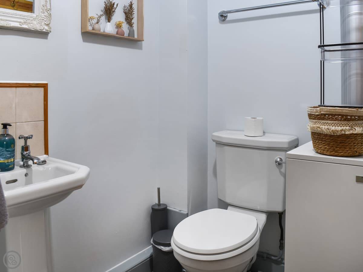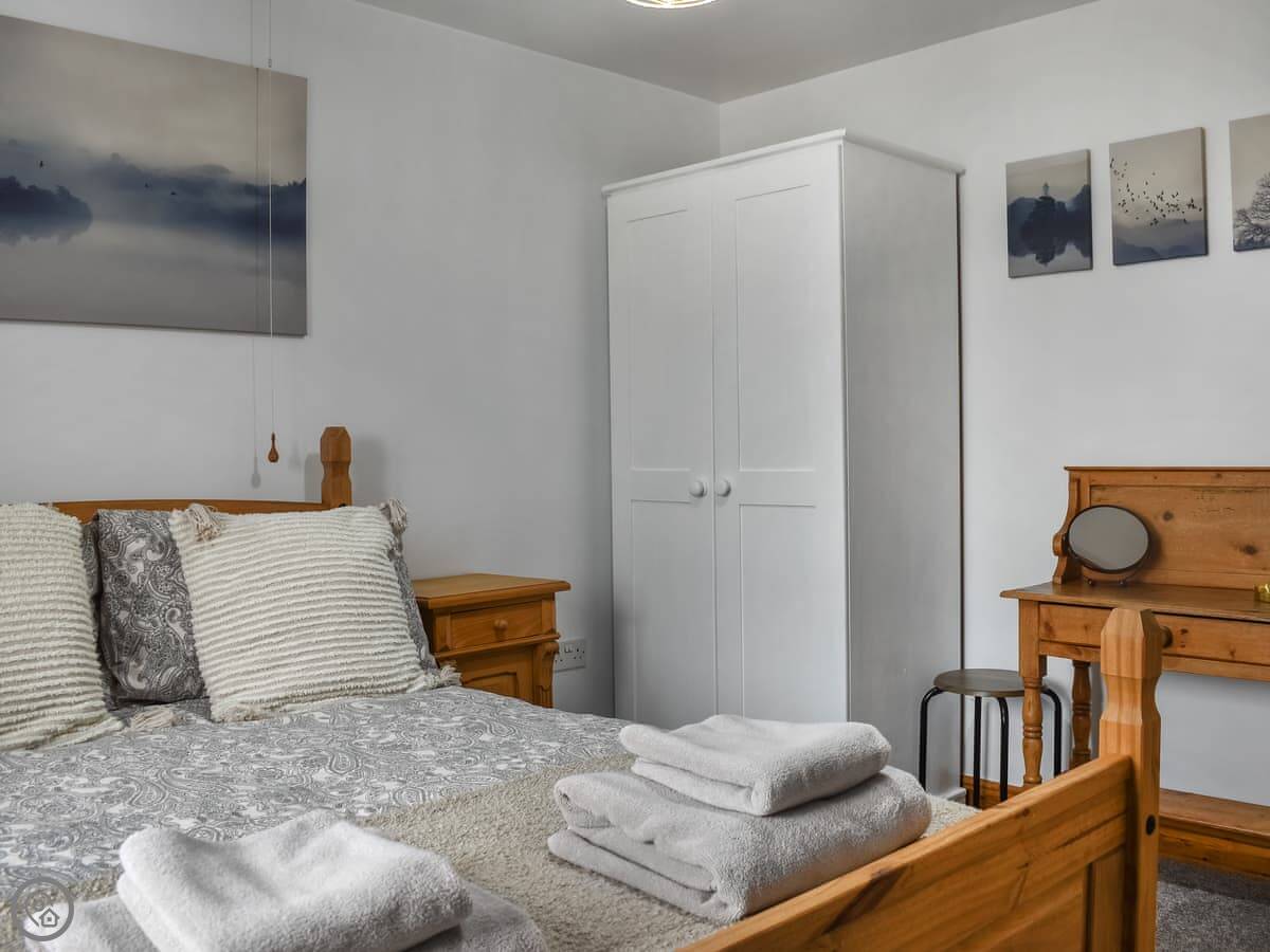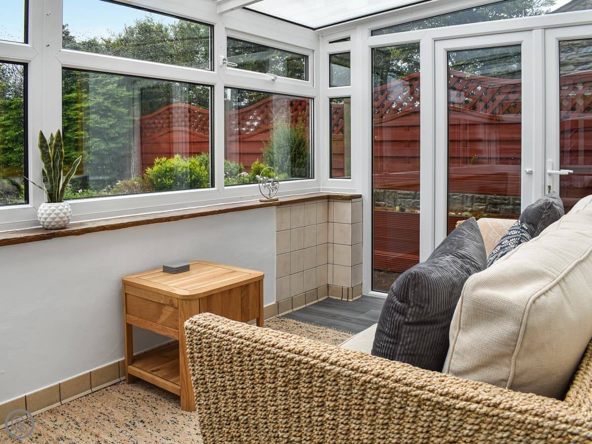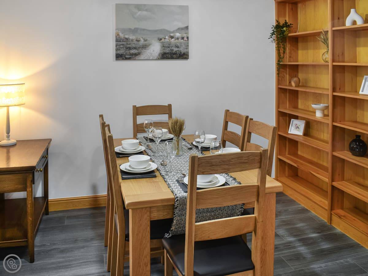 The house sleeps six. Three bedrooms, all doubles, and one family bathroom upstairs. It's got a 4 Star rating. It's a good, solid house, comfortable and clean. There's a log burner in the lounge, you'll need to buy your own logs locally. The kitchen is decent, it's got a dishwasher. There's a downstairs toilet and a little sunroom off the dining area.