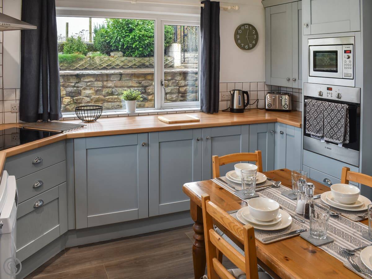 New House Farm is in Overtown, Lancashire. It's part of a farm conversion, so there's a yard area shared with other cottages. Yours has its own small, enclosed garden for sitting out.