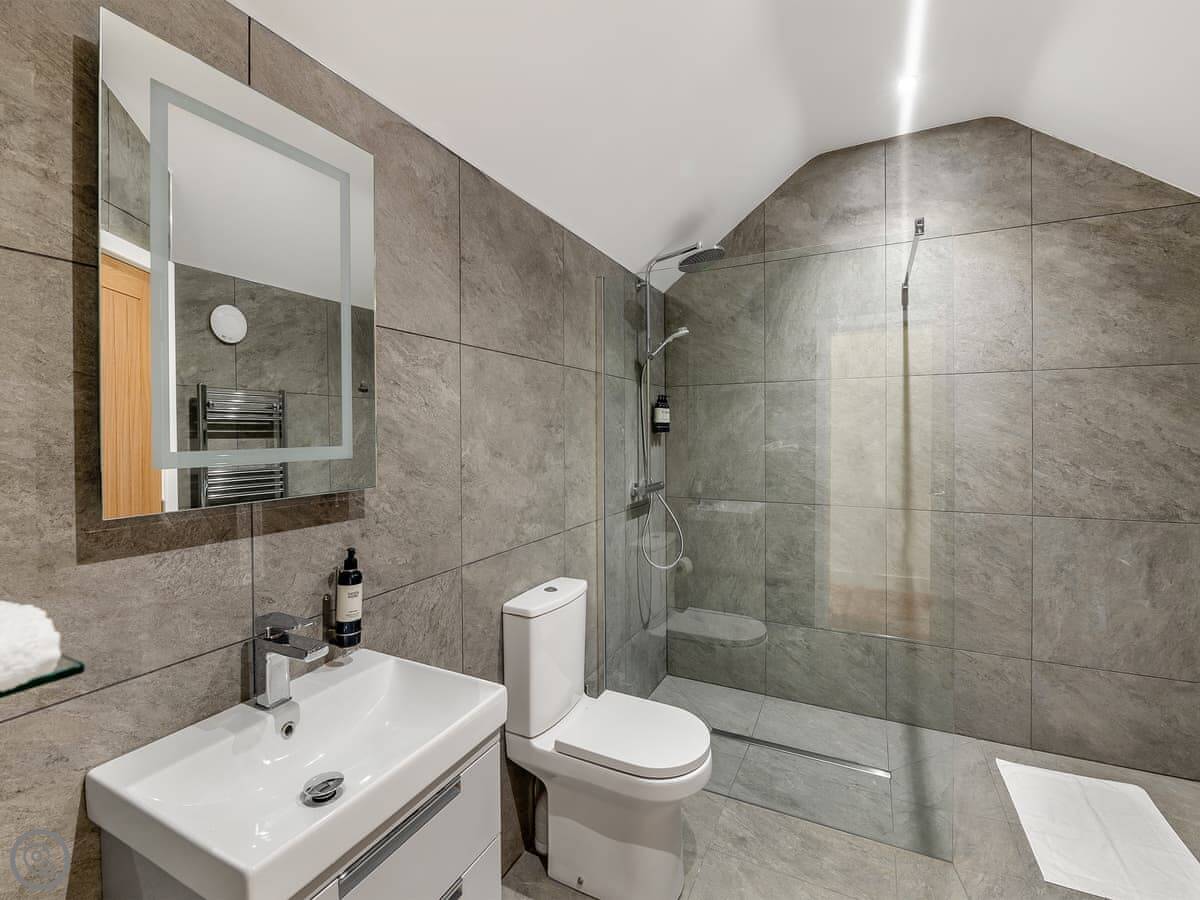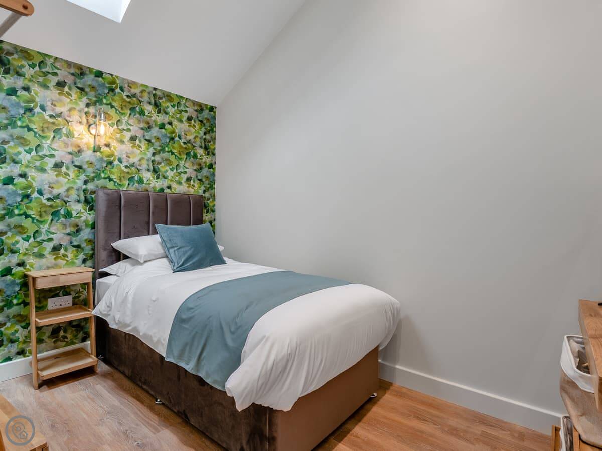 It's two bedrooms. The main bedroom has a big bed that can be two singles if you need it. The second bedroom is a single. There's one bathroom with a walk-in shower. It's got underfloor heating throughout, so it's always warm underfoot.