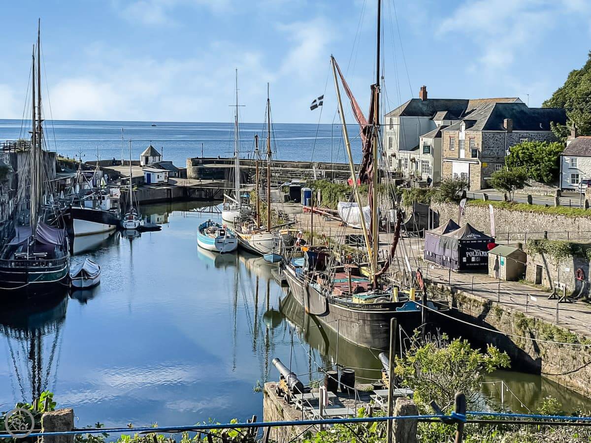 Charlestown Harbour is about a mile along the coast. It's a proper old harbour with tall ships. There are pubs and restaurants there. Porthpean beach is the other direction, also about a mile.