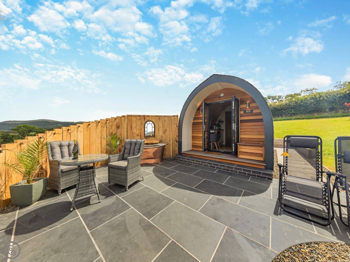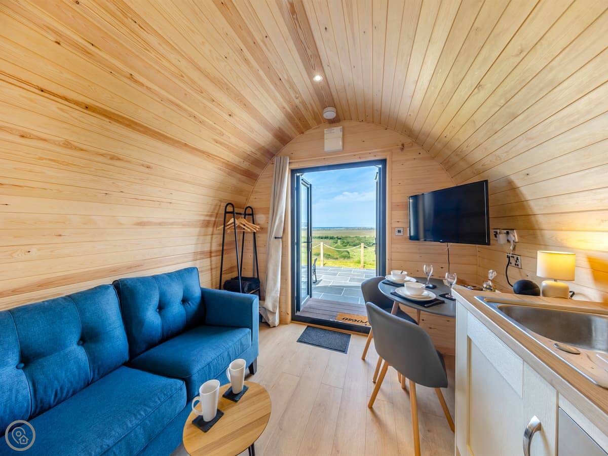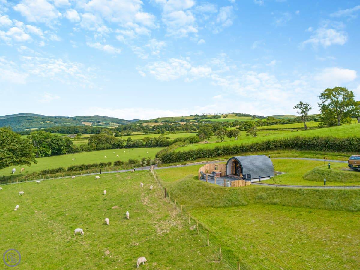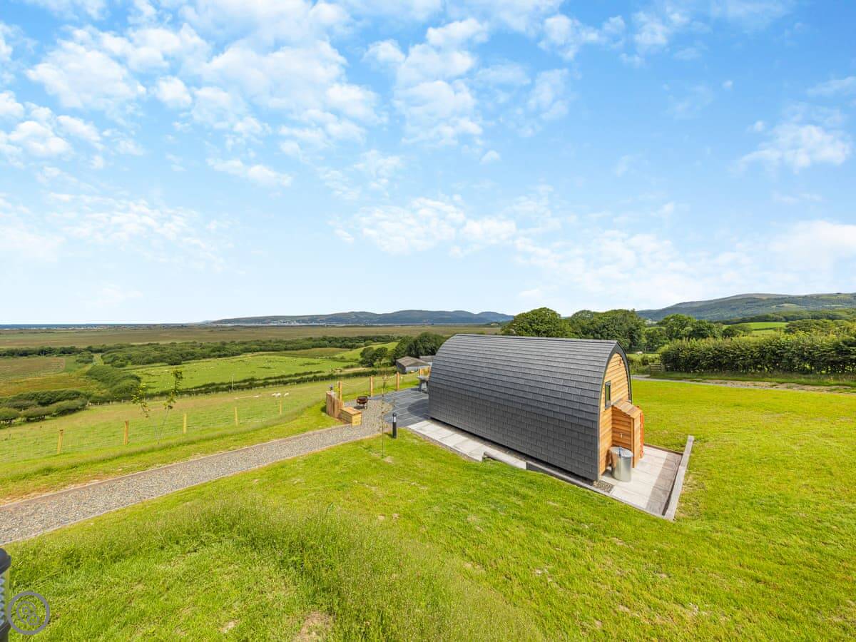Leri is a holiday pod in Staylittle. It's detached and sits on its own a bit, looking out over the Dyfi Nature Reserve. You can see the sea from here too, over towards Borth.