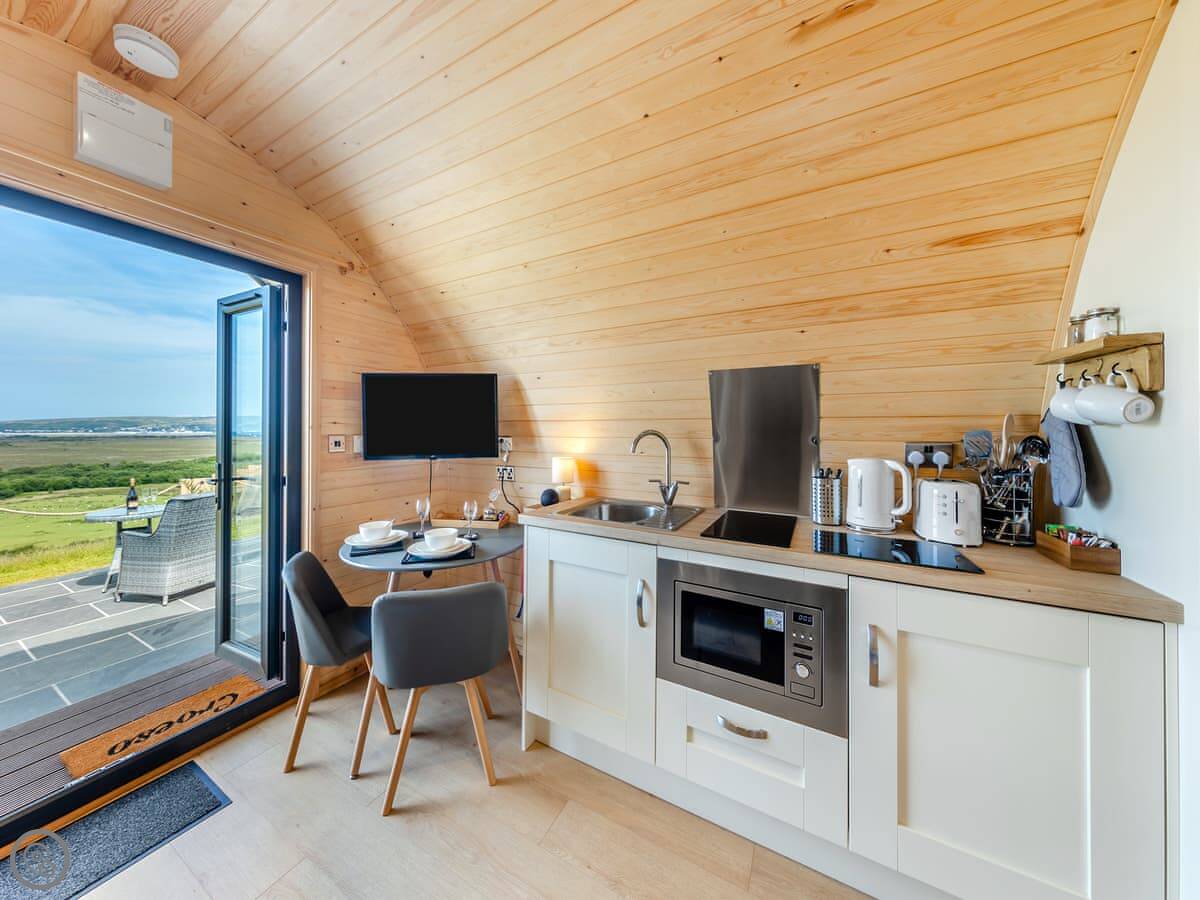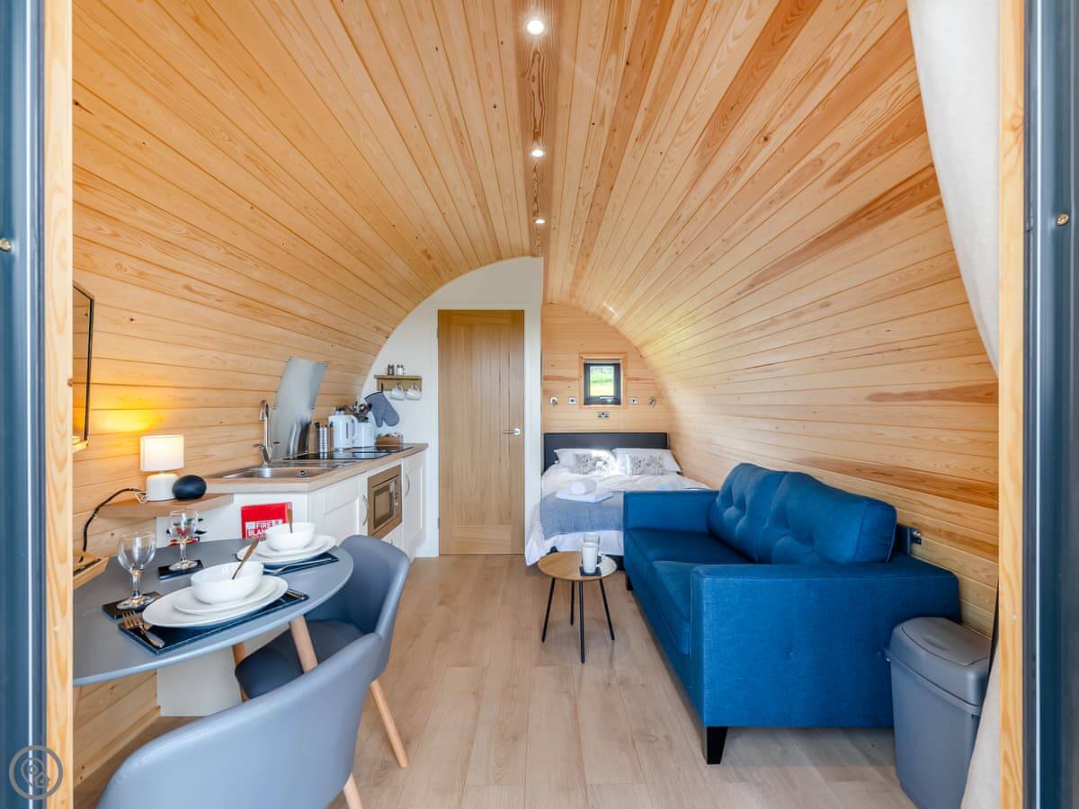 Facilities: there's parking right by the pod, towels and bedding are included, and there's WiFi and a TV. It's all electric. No pets.
