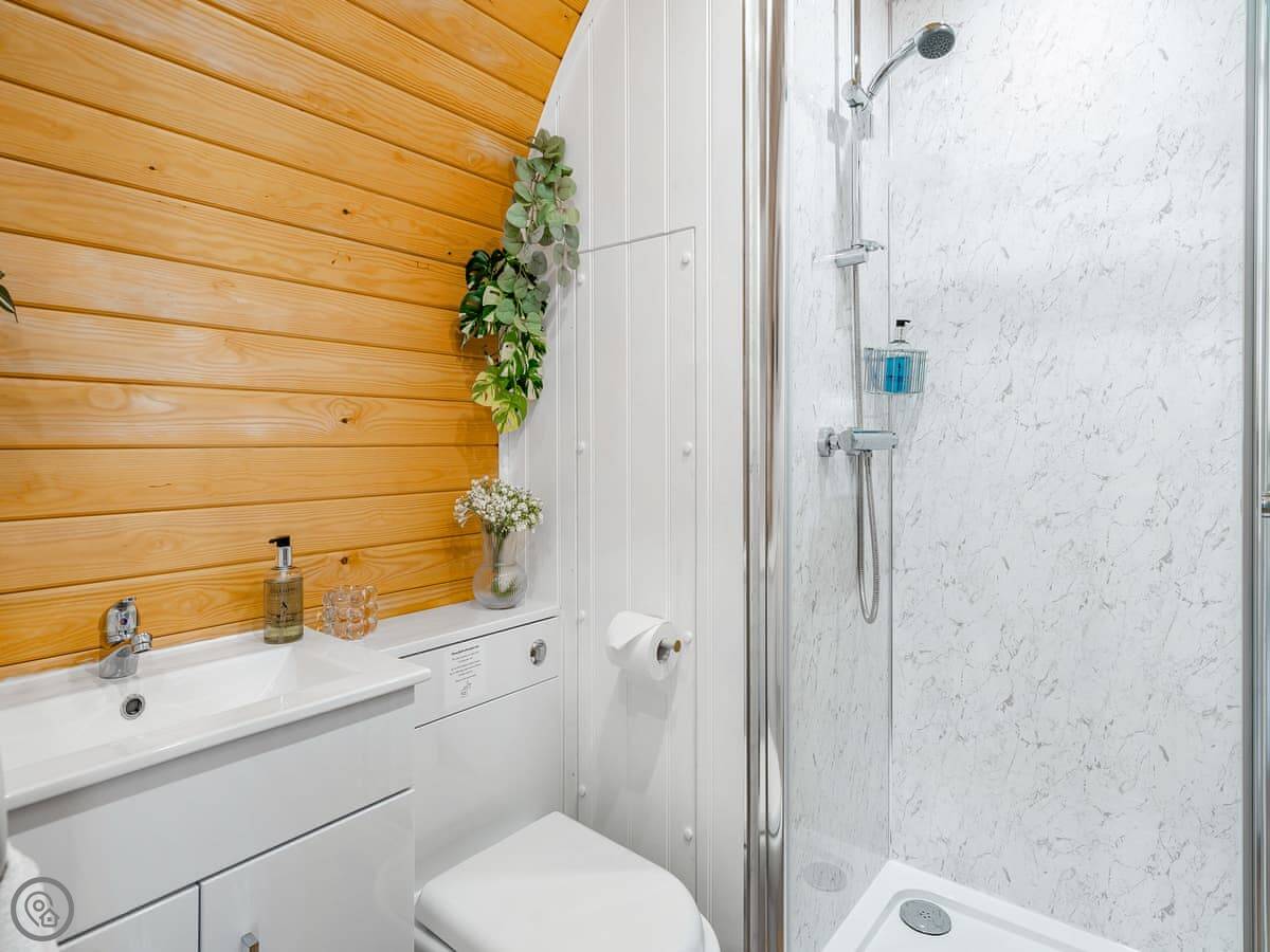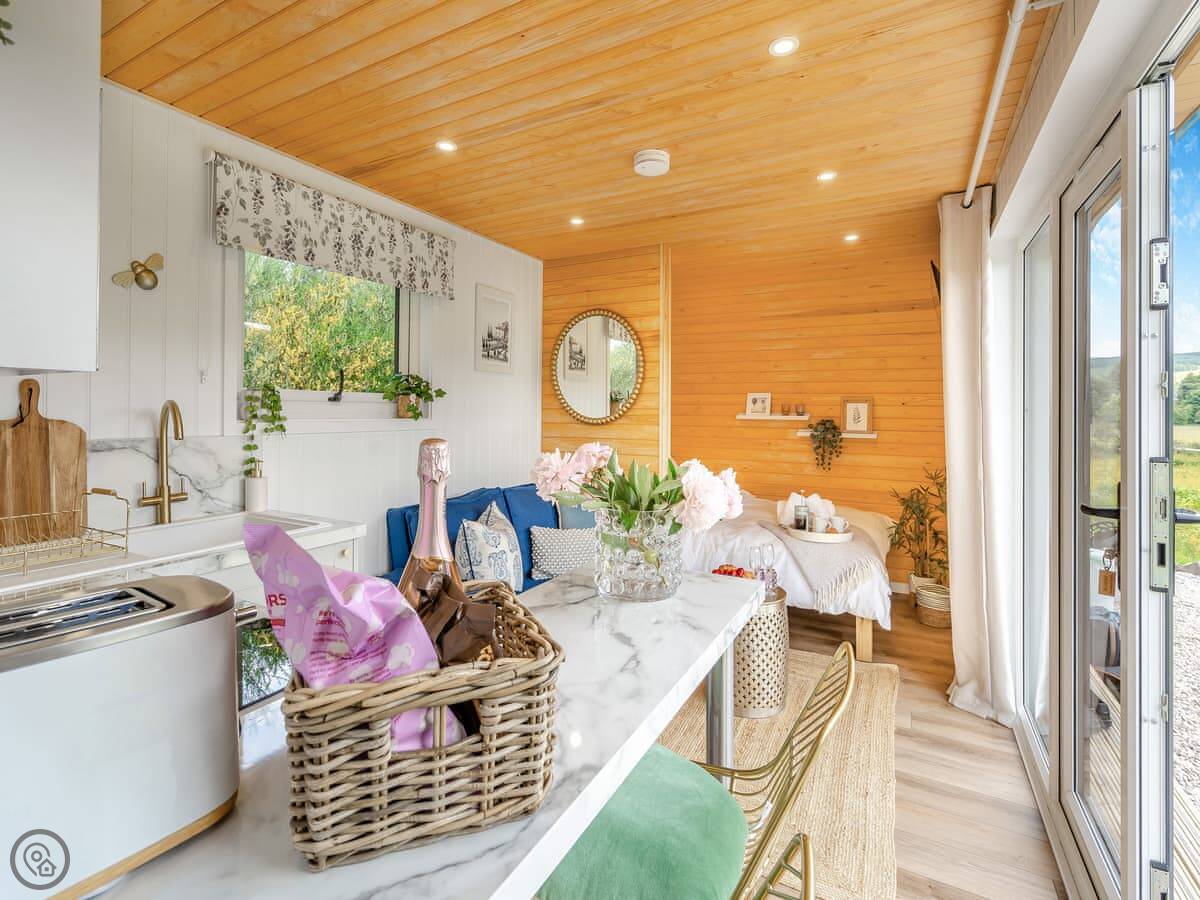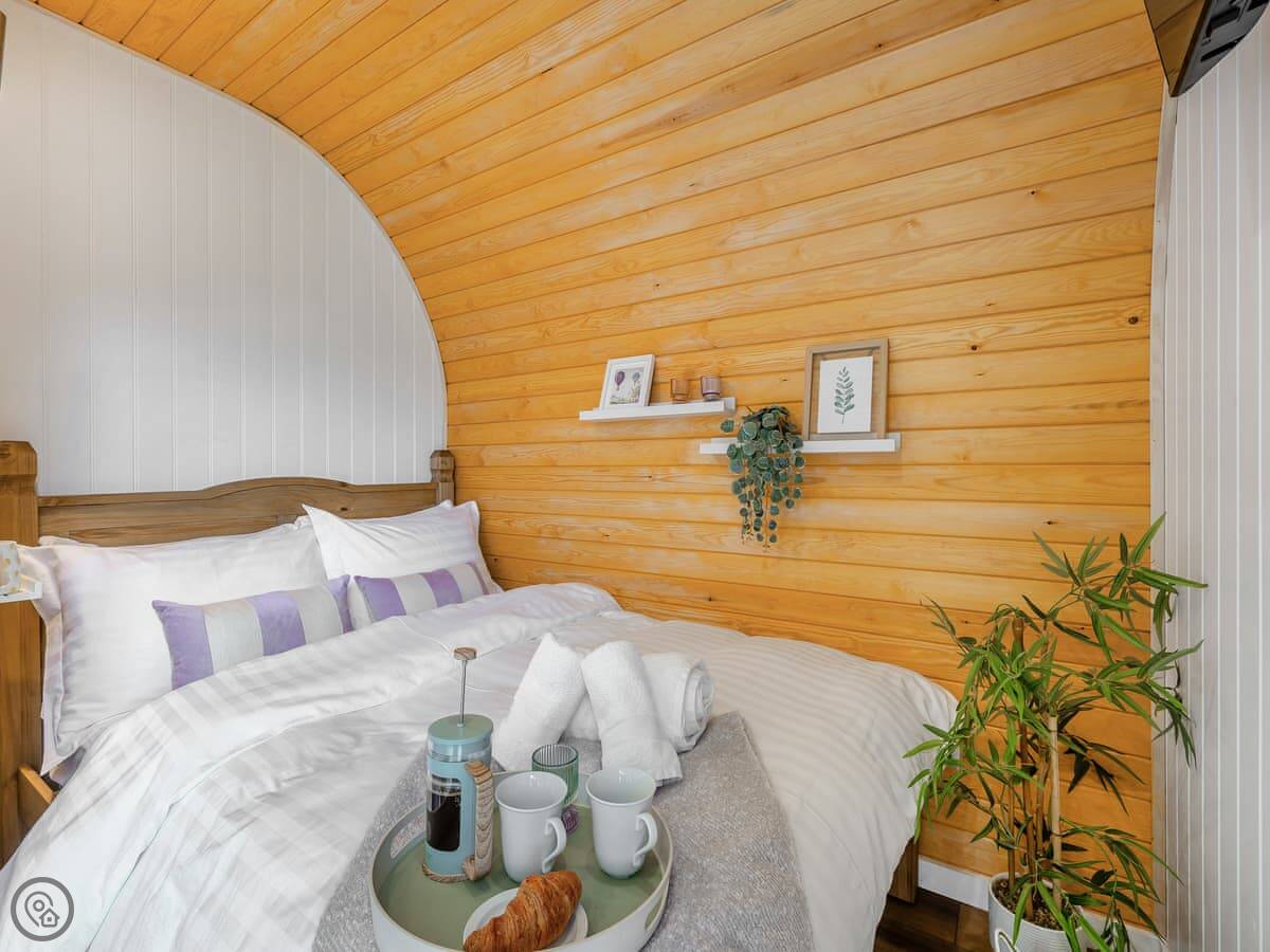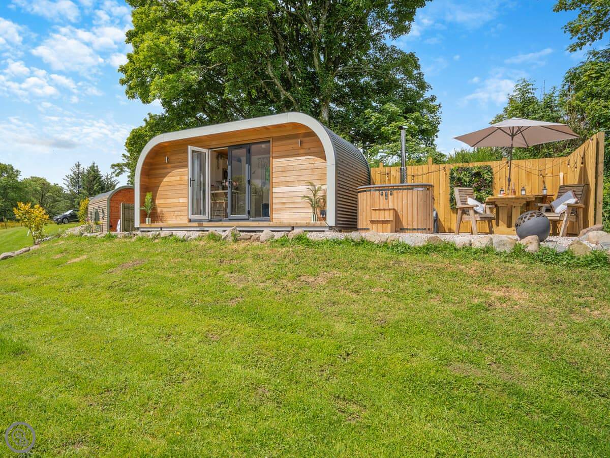 Facilities include WiFi, parking right next to the pod, and all bedding and towels. The hot tub wood and firepit fuel is provided. It's a 5 Star place, which means it's well-equipped and finished to a high standard.