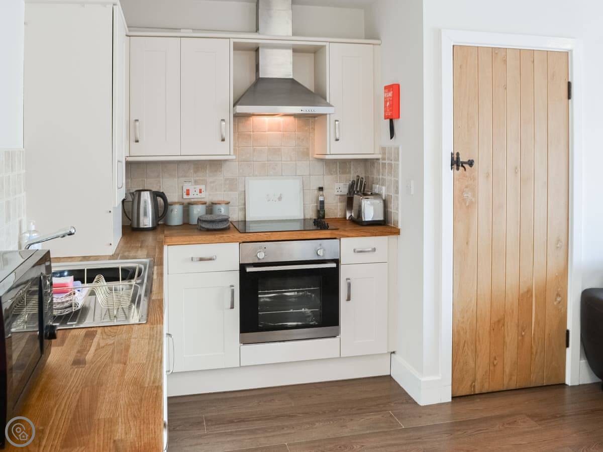 There's parking right outside. The facilities are what you'd expect: WiFi, a washing machine, a dishwasher. Bedding and towels are included. We can provide a cot and highchair if you need them. You can bring up to two dogs.