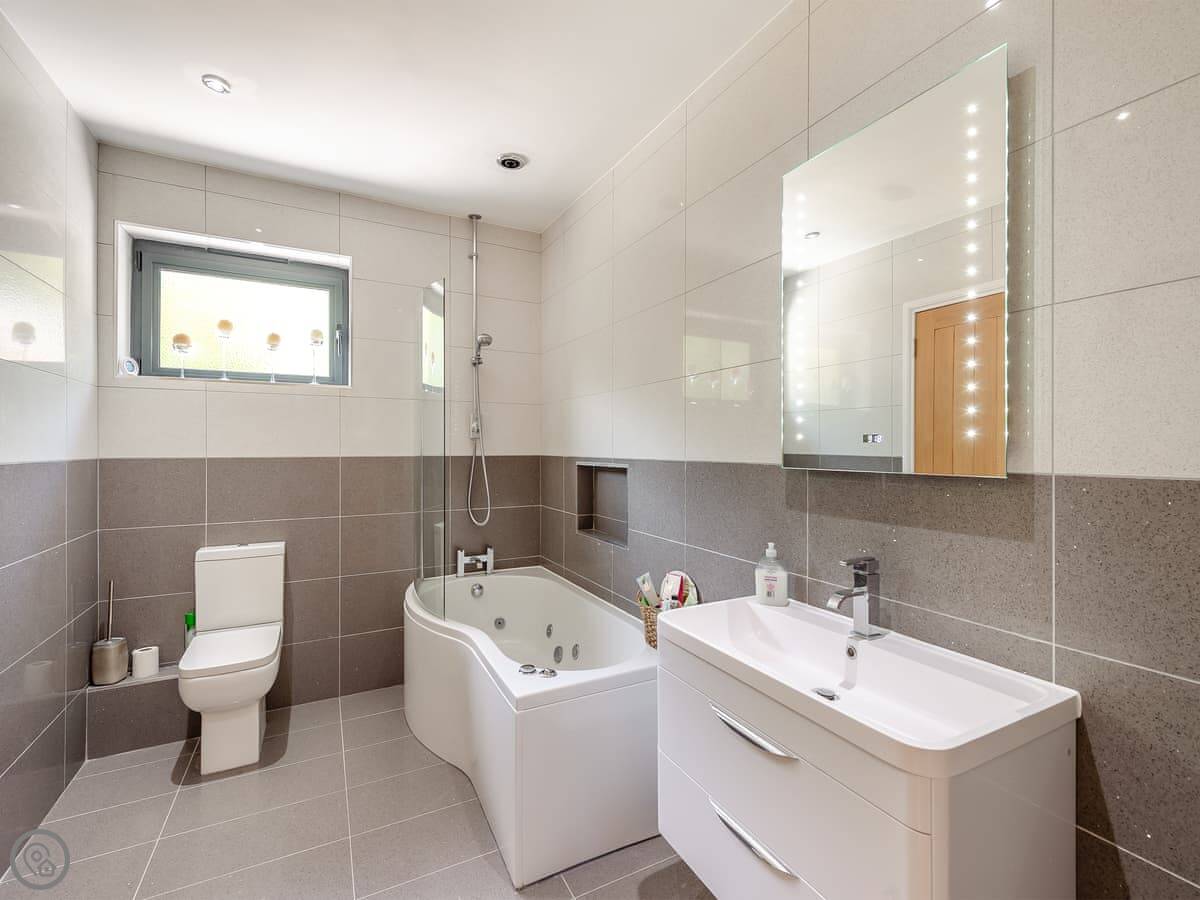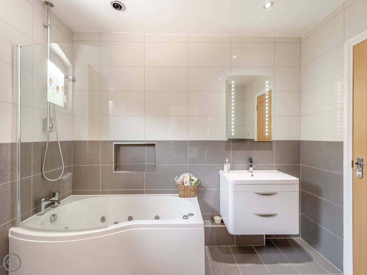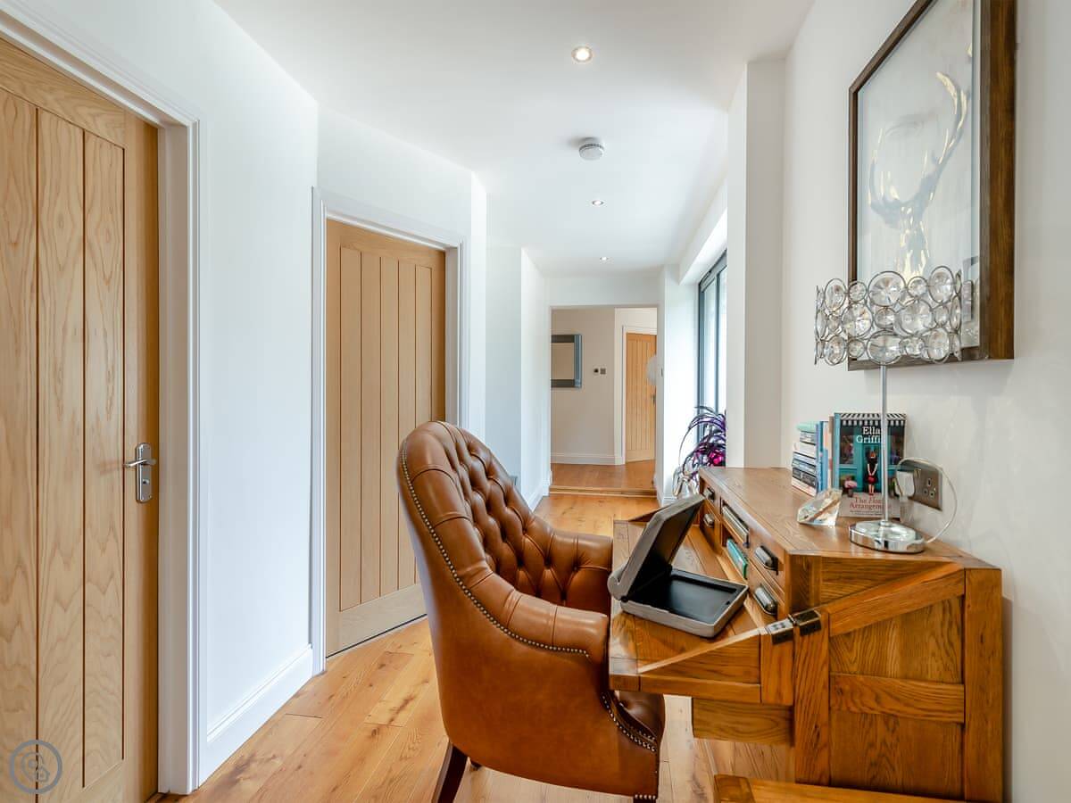 The house sleeps six in three bedrooms and has two bathrooms, one of which is a ground floor wet room. It’s got a 5 Star rating, which means it’s well-finished and has more features than standard. The wooden floors downstairs can be a bit echoey.