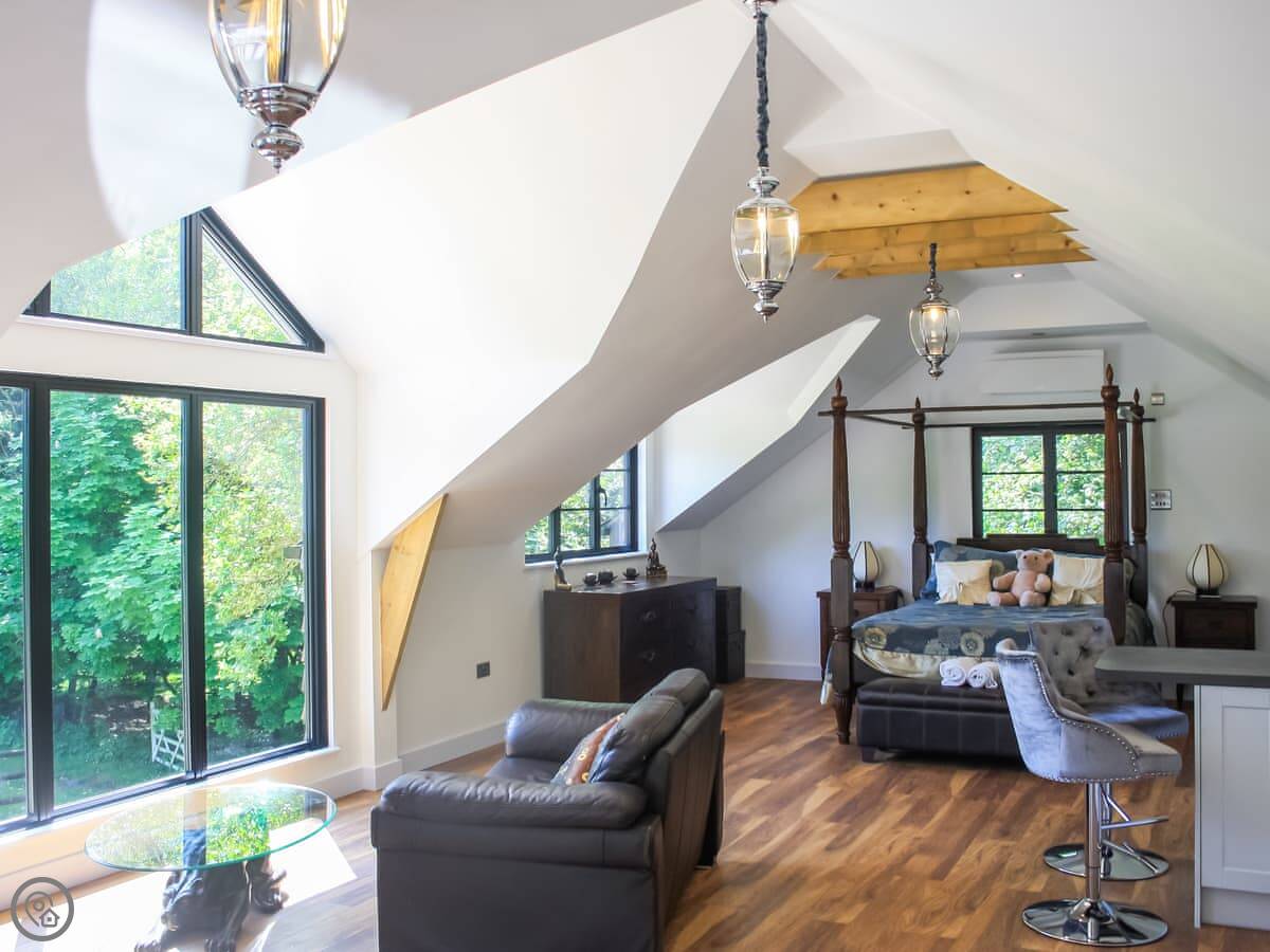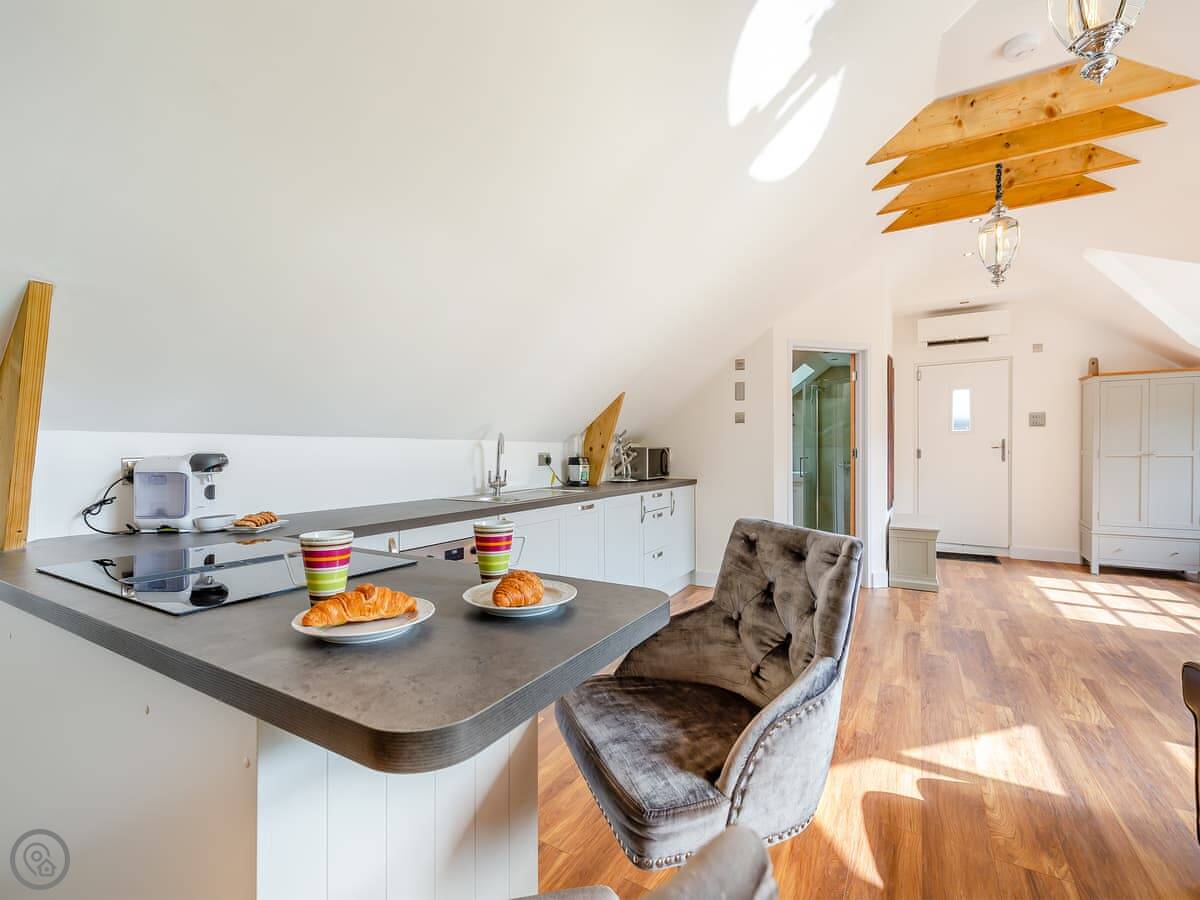 Foxton Barn is in Harrietsham, in Kent. It's a single-storey apartment above a games room. The games room is shared with the other cottage on the site, which I think is given some privacy by having its own external staircase.