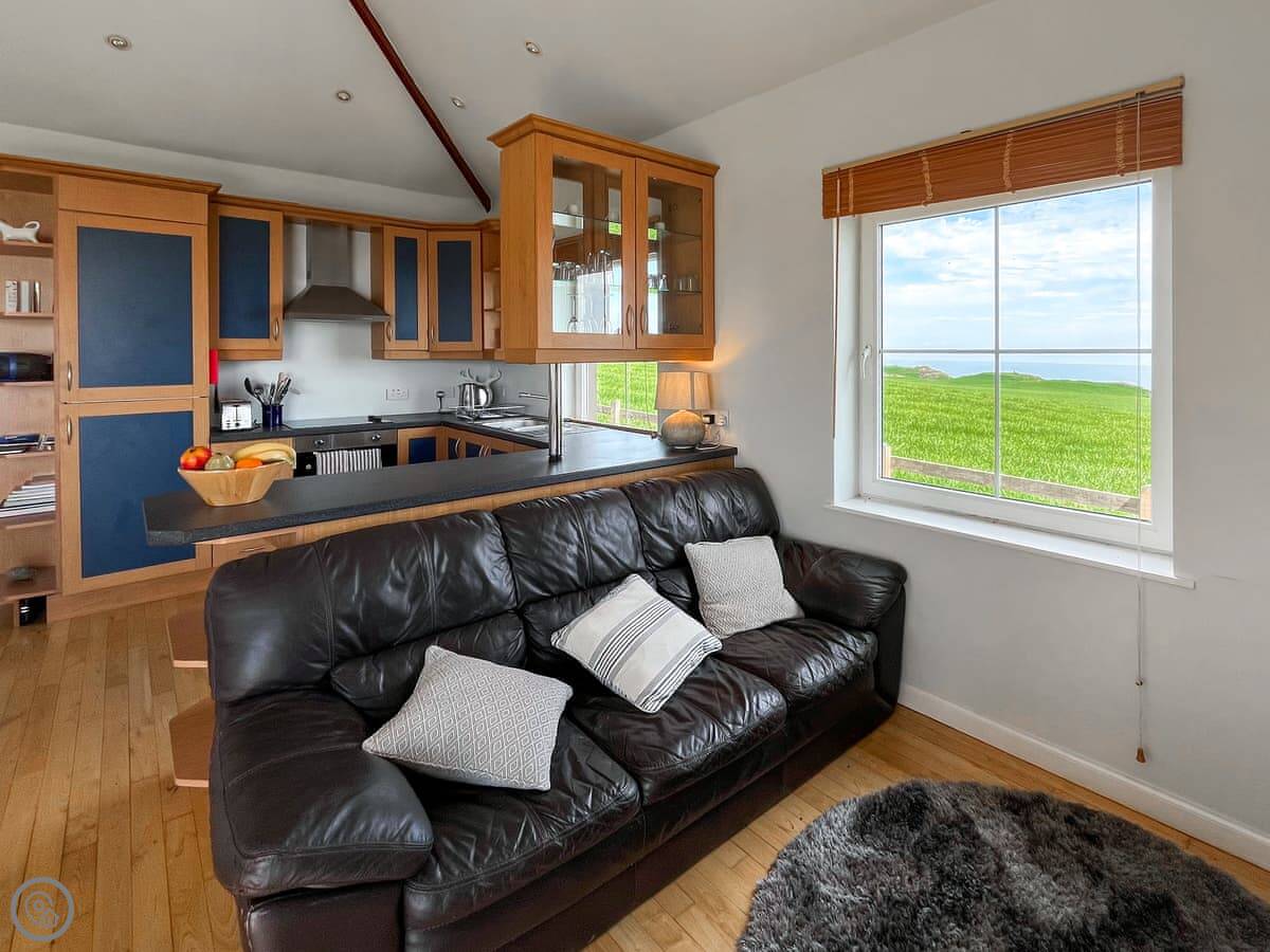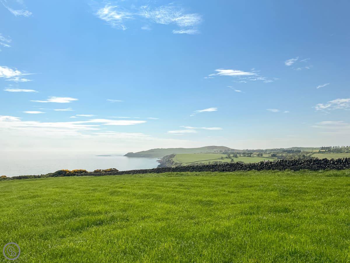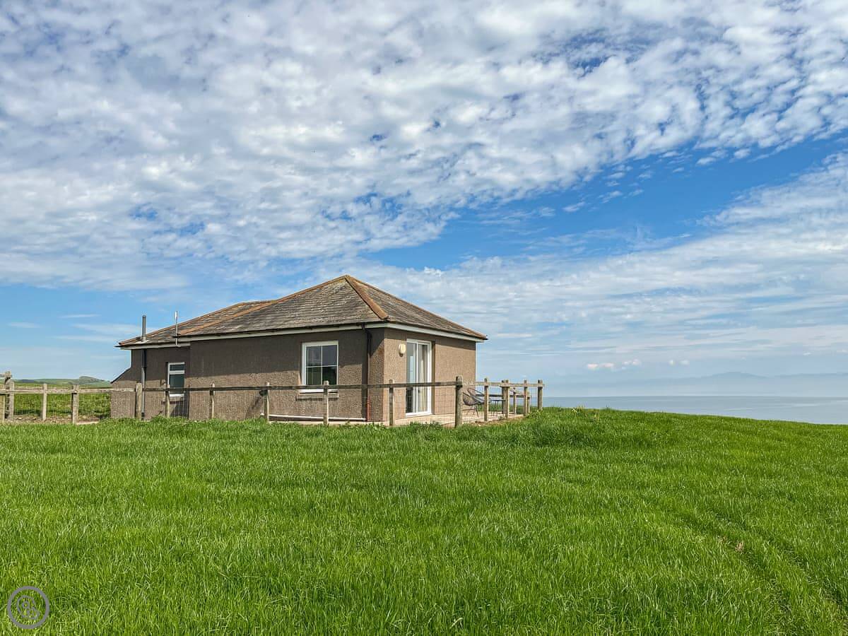 The Look Out is a cottage near Dundrennan. It's detached, so no one shares a wall with you. It's at the end of a farm track. The sea views are the main thing. There are big windows in the living area so you can see it from inside.