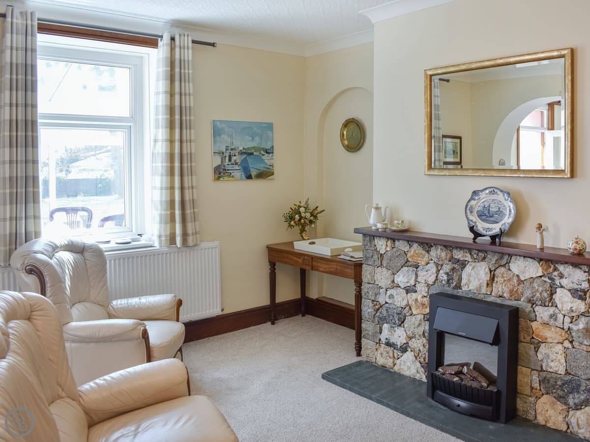 The front room is open plan, with the kitchen at one end. Upstairs, there's a small second living area we call the snug. It's got some books and local leaflets in there. The garden is a good size and fully enclosed.