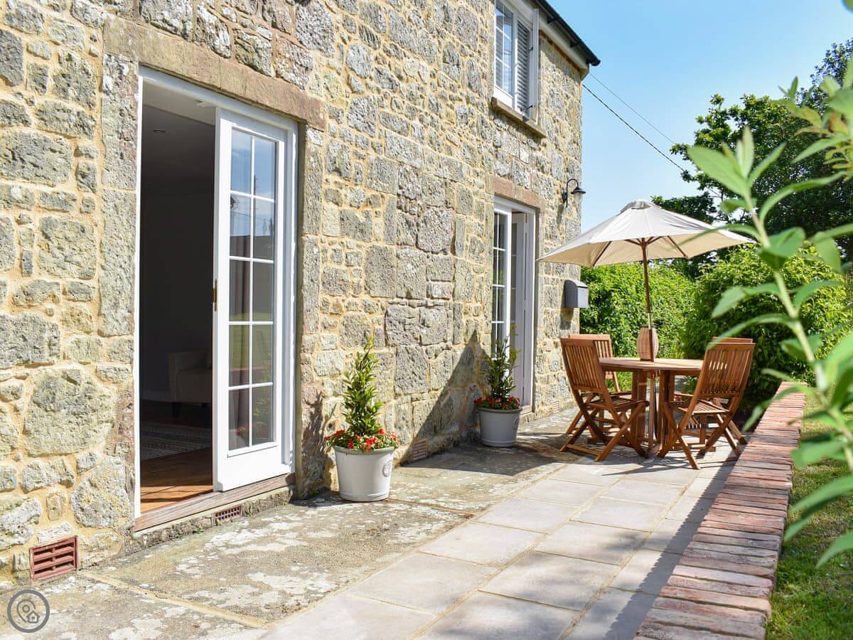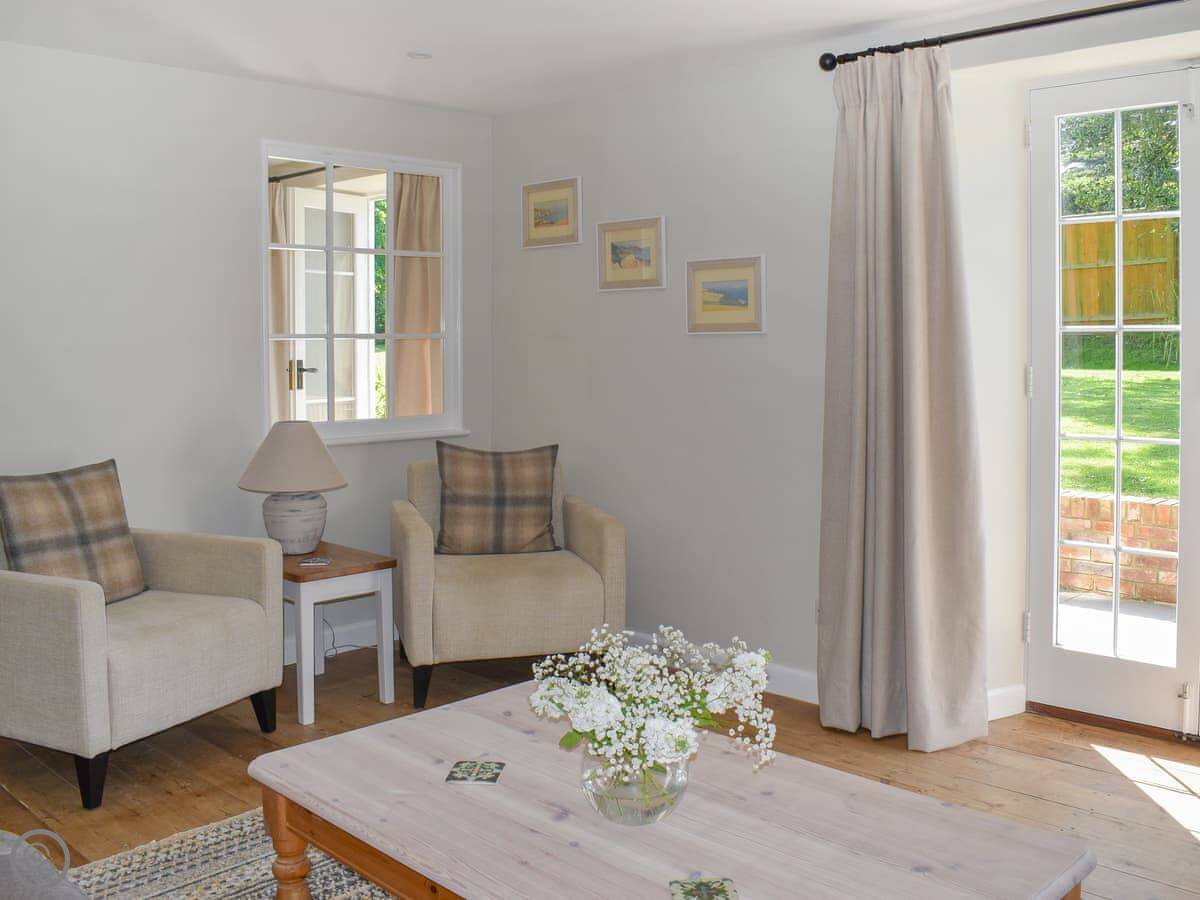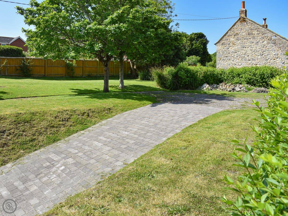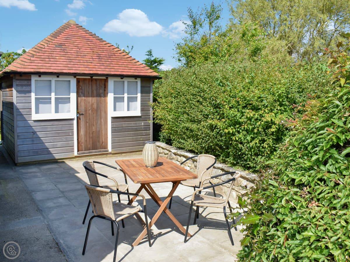 Outside, there's a decent lawn with two patio areas. One at the back, one at the front. You've got the whole garden to yourselves. Parking is on site.