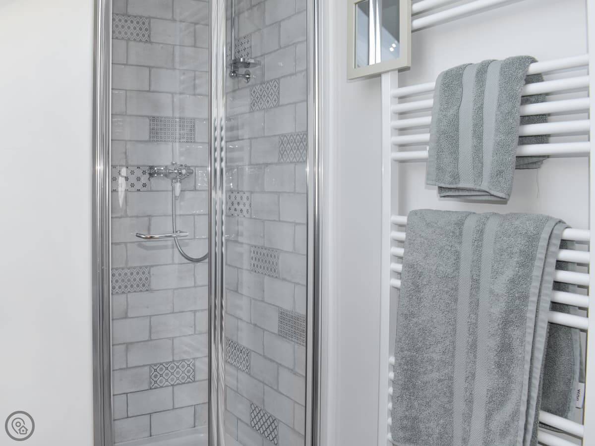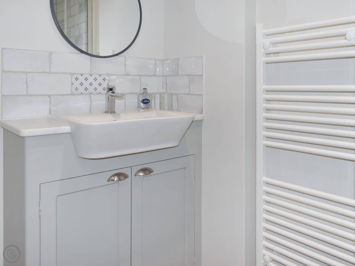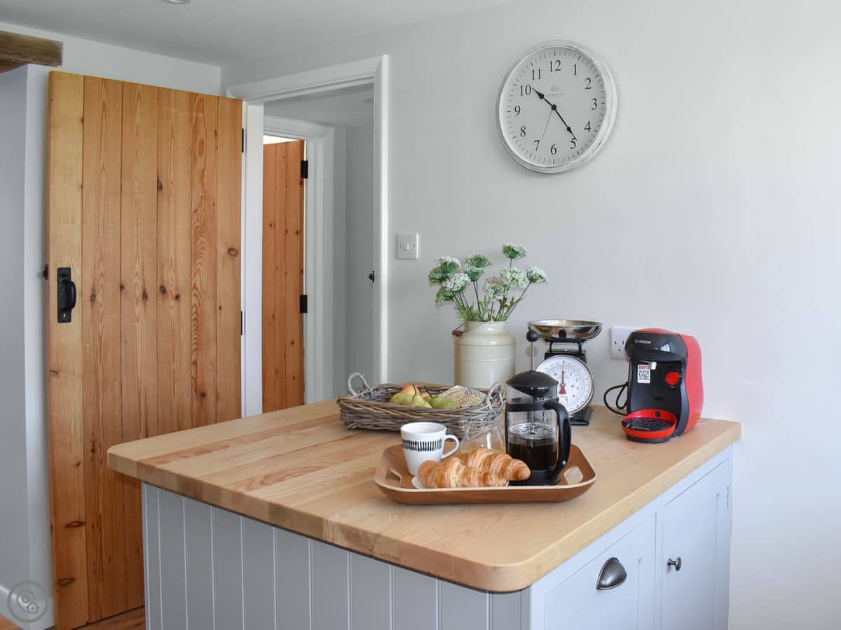 Inside, it's all been refurbished recently, so it feels fresh. There's a wood burner in the living room. The kitchen has a dishwasher, and there's a utility room with a washing machine and tumble dryer. Plenty of space.