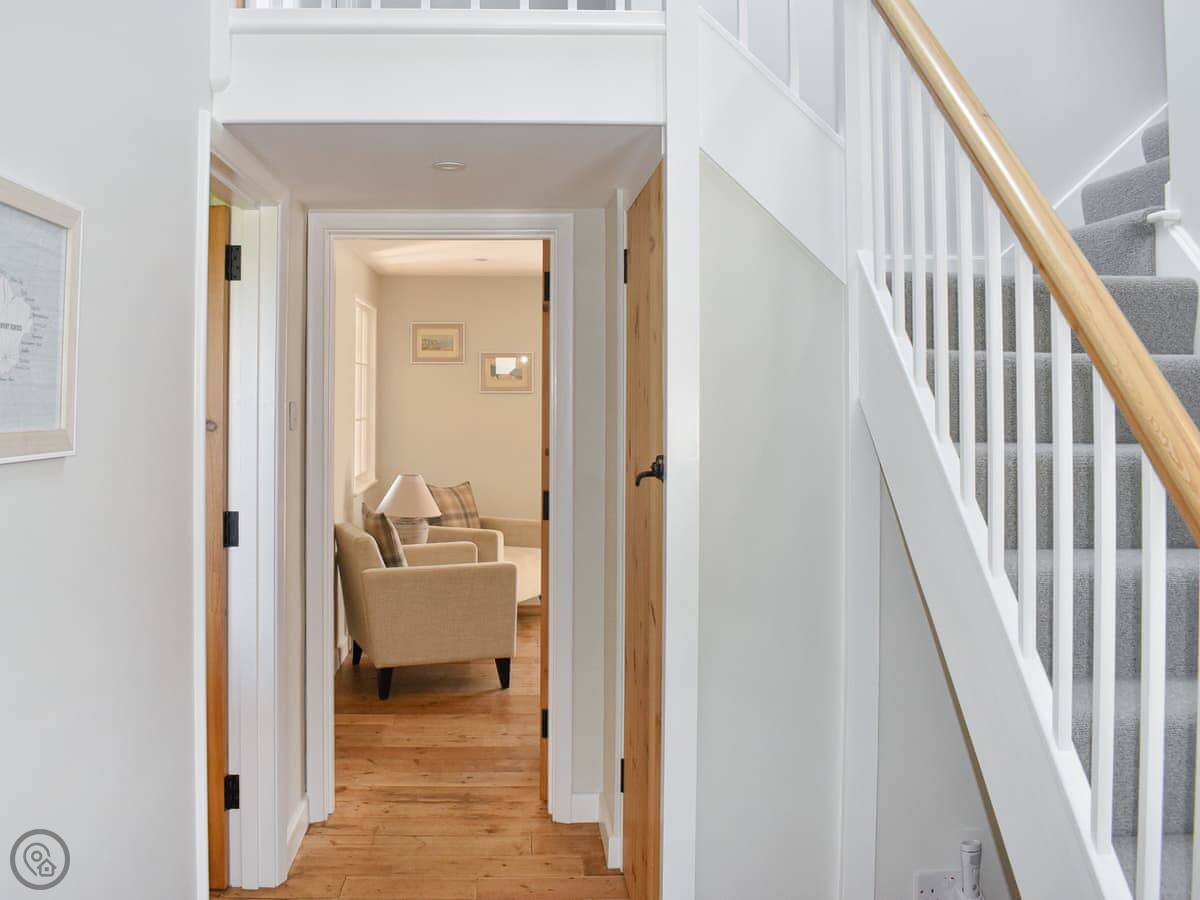 It sleeps four. Two double bedrooms, both ensuite. That's handy. It's got a 4 Star rating, so it's well kitted out and comfortable. The stairs are fine.