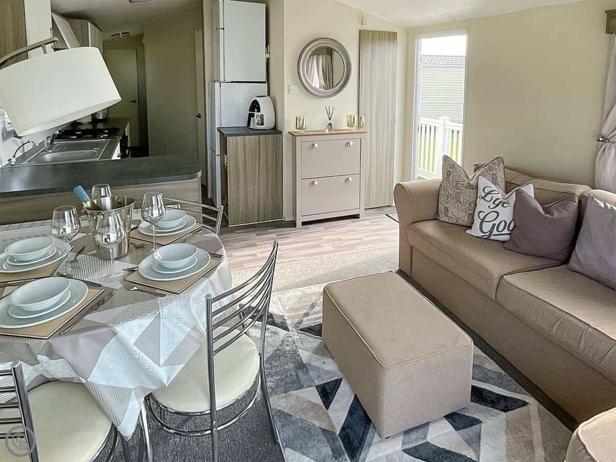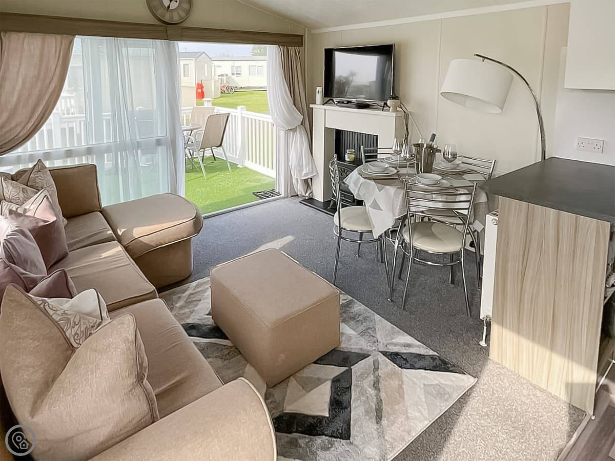 You're right on the park, which has a pool complex, a bar and a restaurant. The beach is a two minute walk. It's shingle and sand, and it's very shallow so it's good for kids. The island itself is quiet. You can drive to the West Mersea side for shops, chip shops, and the famous Company Shed for seafood.