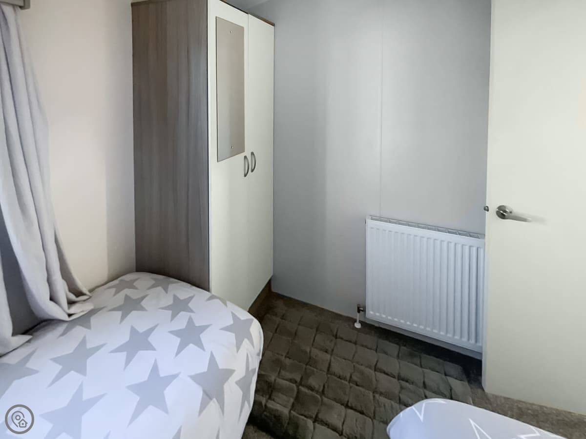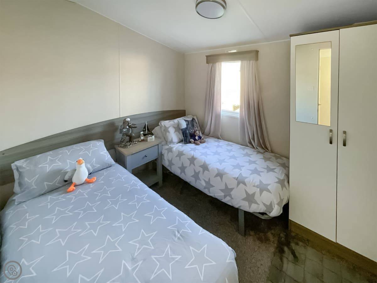 The place sleeps six, but it's two bedrooms. That's because one is a very large double and the other has a set of adult-sized bunk beds and two singles. It suits two couples sharing, or one family. There's one bathroom, which is a wet room on the ground floor. It's got a 4 Star rating, so it's in good order.