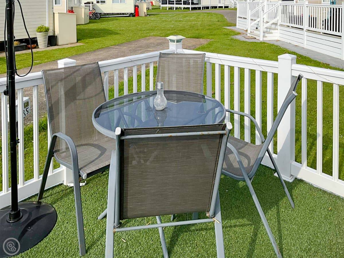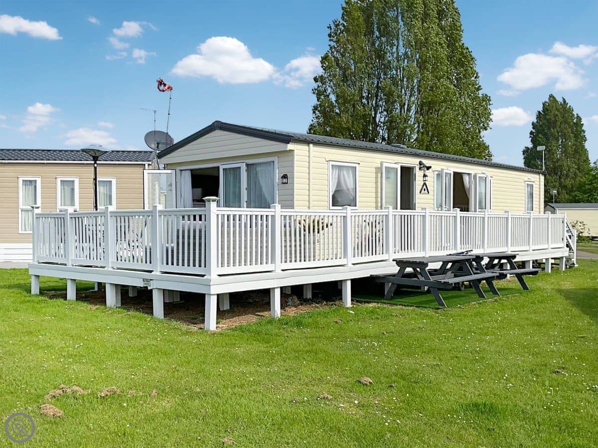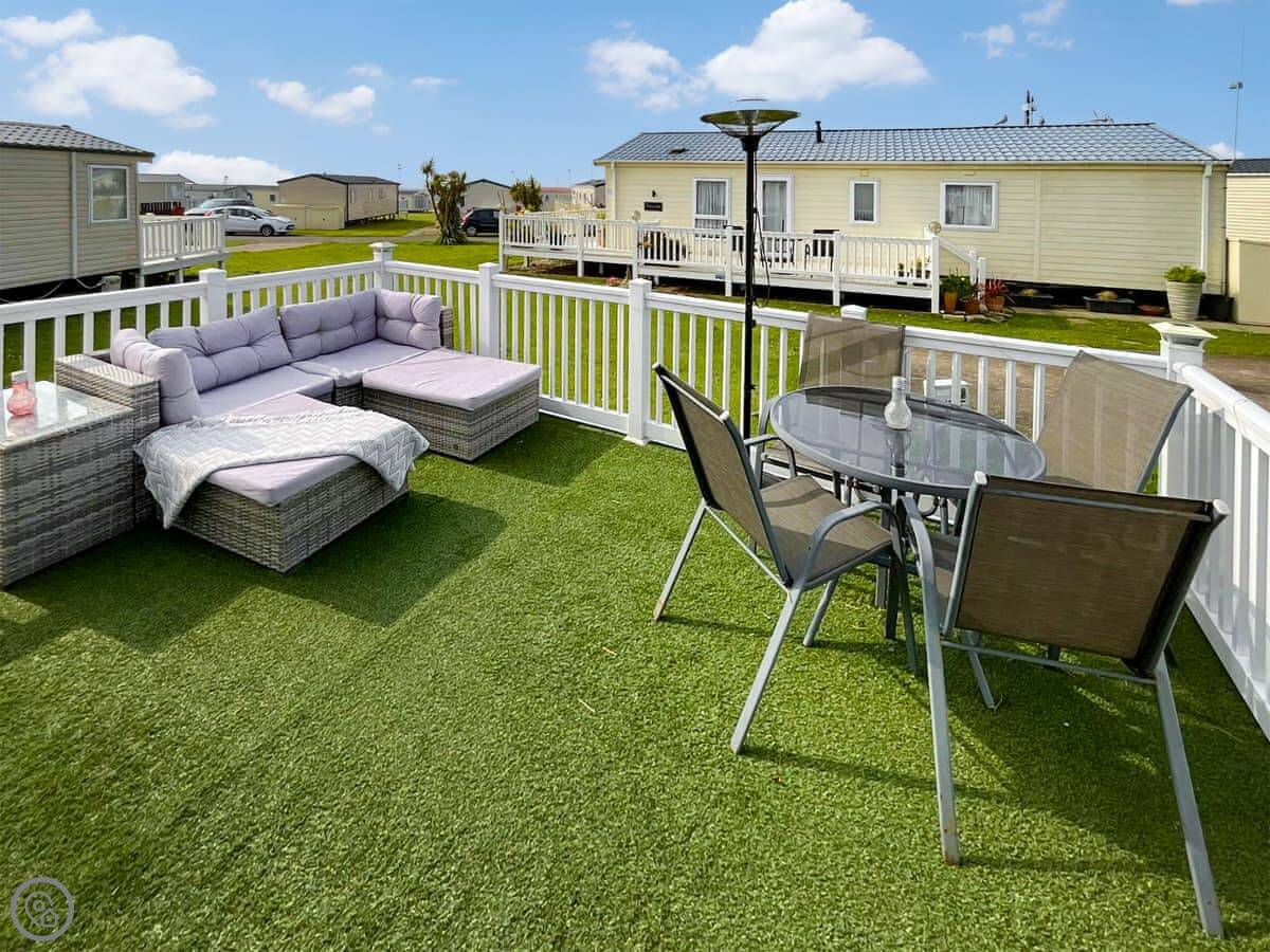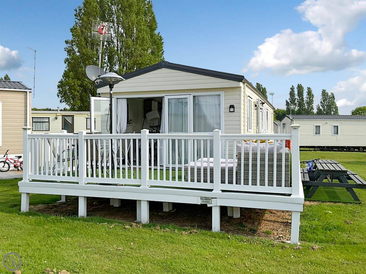 Island Retreat is a chalet on Mersea Island. It's detached, sat amongst others on Coopers Beach Holiday Park. You have your own bit of decking, fully enclosed, so it's private.