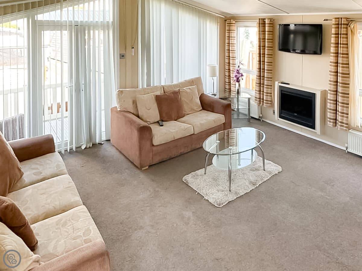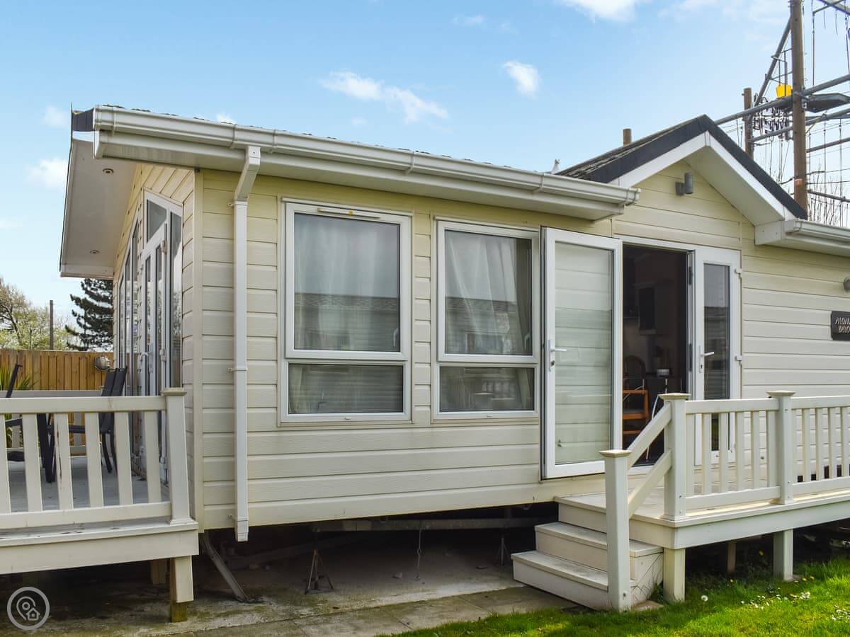 Sandy Shores Lodge is on the park in Towyn. It's a modern lodge, detached, so you've got your own space. The beach is a minute's walk away. Literally, you cross the road and you're there.