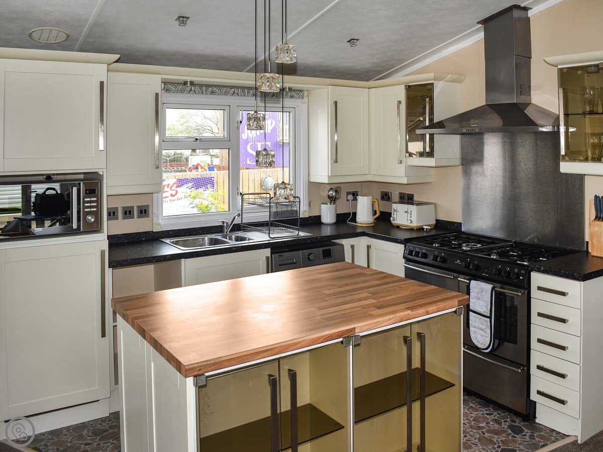 The living area is all open plan. Kitchen, dining, sitting room, all in one space. There are grab rails in the bathrooms so it's suitable if someone's a bit less mobile.