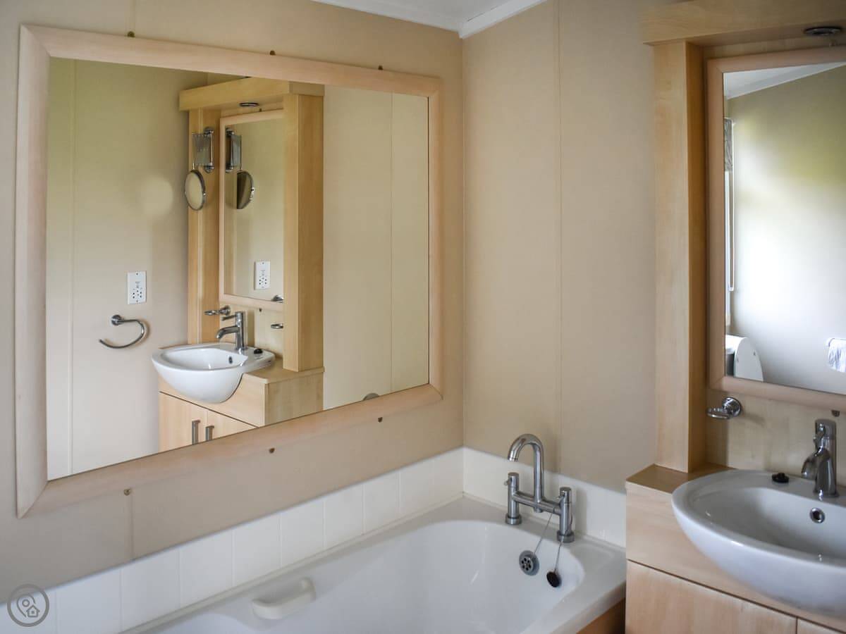 It sleeps six but it's got two bedrooms. Both have their own bathrooms, which is handy. It's got a 4 Star rating. It's comfortable and new, not old-fashioned.