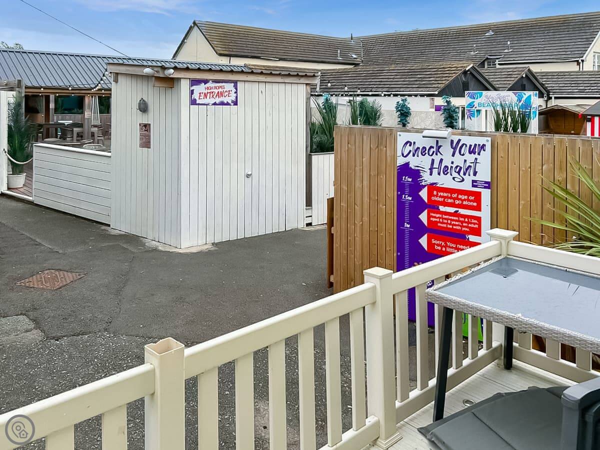 The park itself has things like crazy golf and a high ropes course. You can use all that. There's a pub nearby and a golf course.