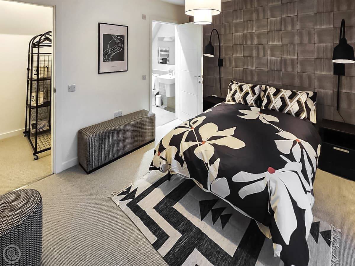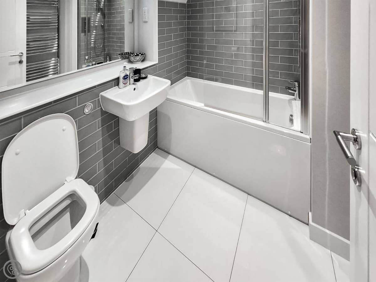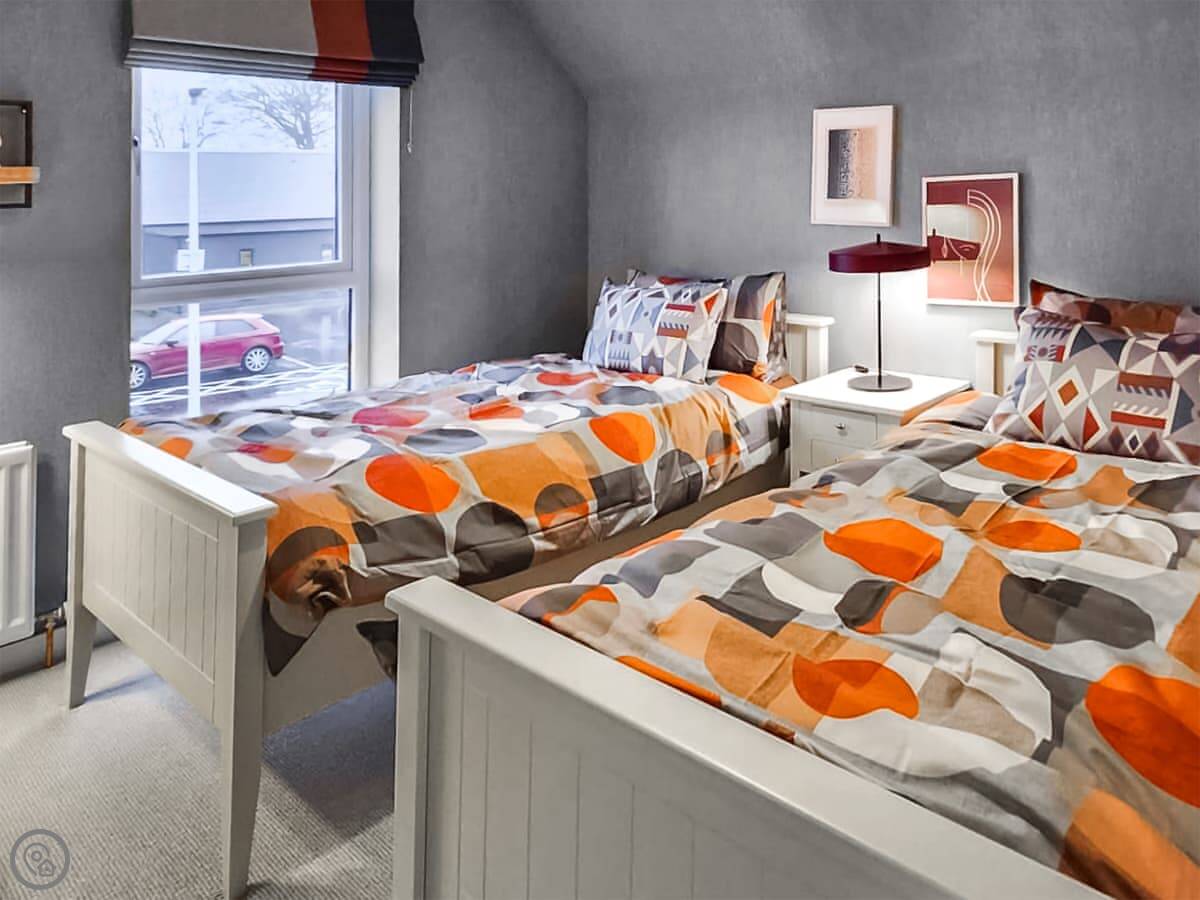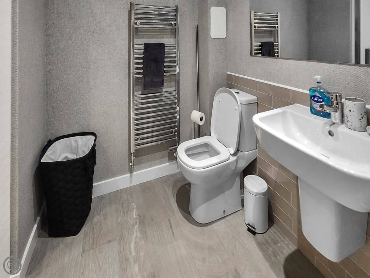 It sleeps six people in three bedrooms. Two doubles and one twin. There are two toilets, one on the ground floor, and a family bathroom with a shower over the bath upstairs. The master bedroom has its own ensuite shower.