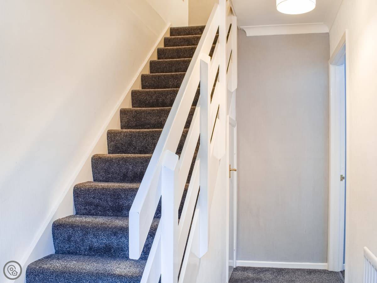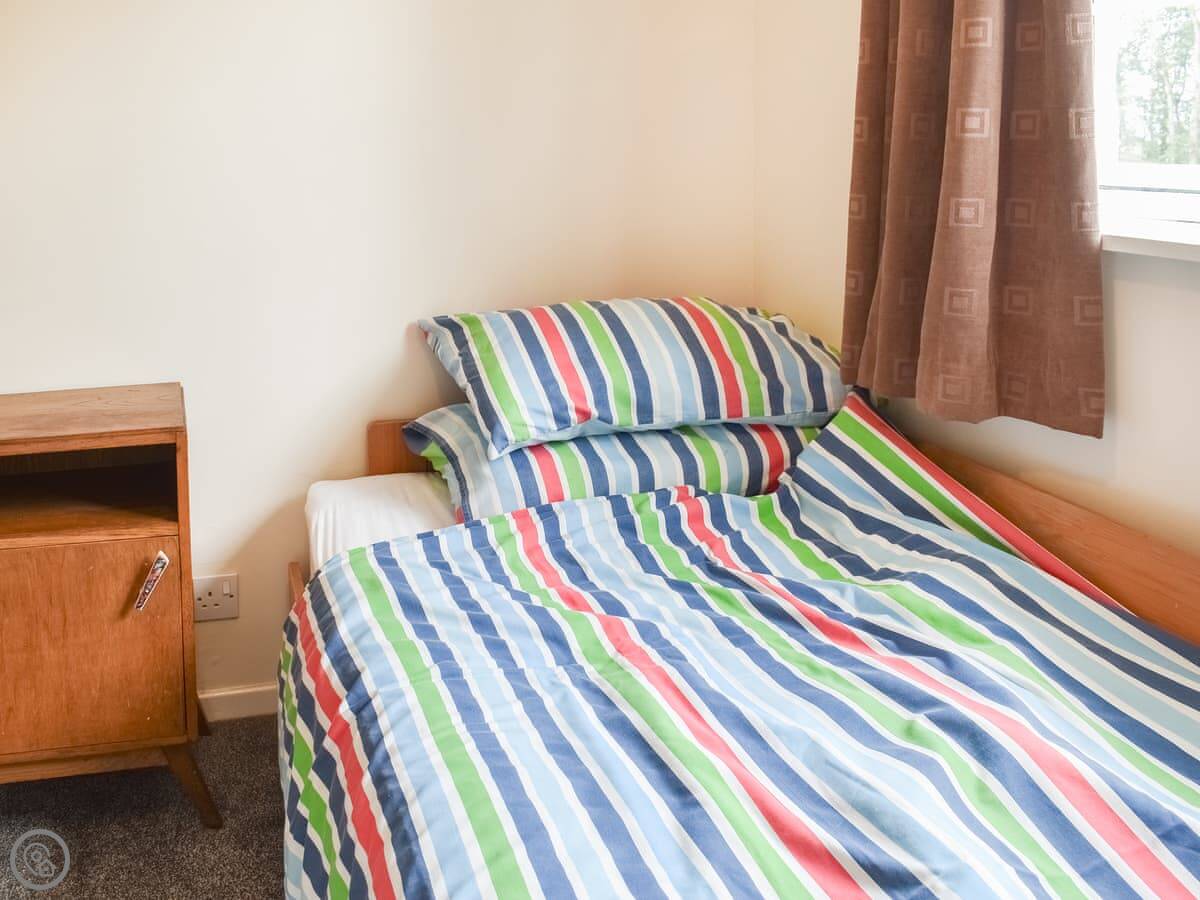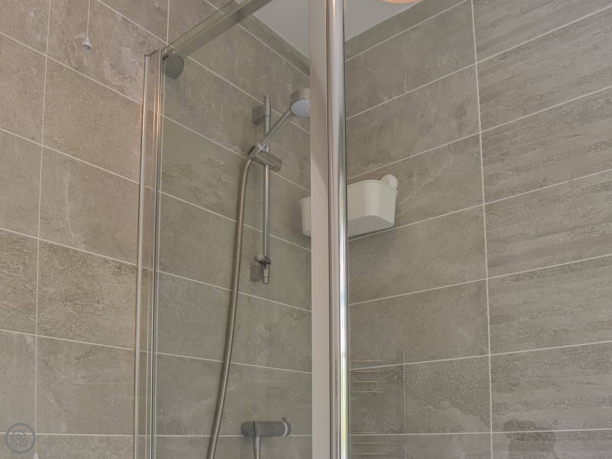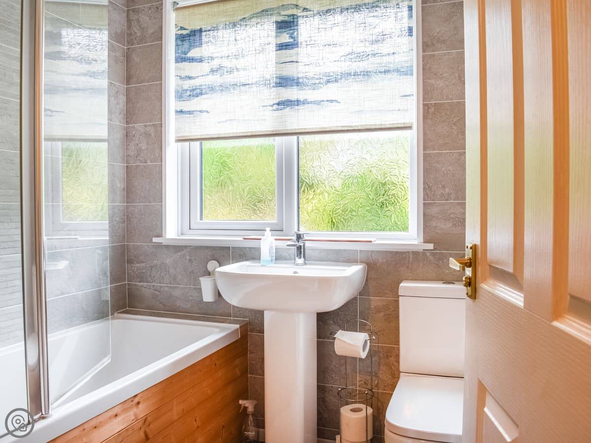 Oaklea Cottage is in Windermere, but just outside the main bit of town. It's a terrace cottage, so you've got neighbours on one side. It sleeps five, in three bedrooms. There's one bathroom, with a bath and a shower over it.