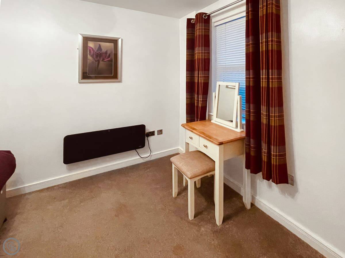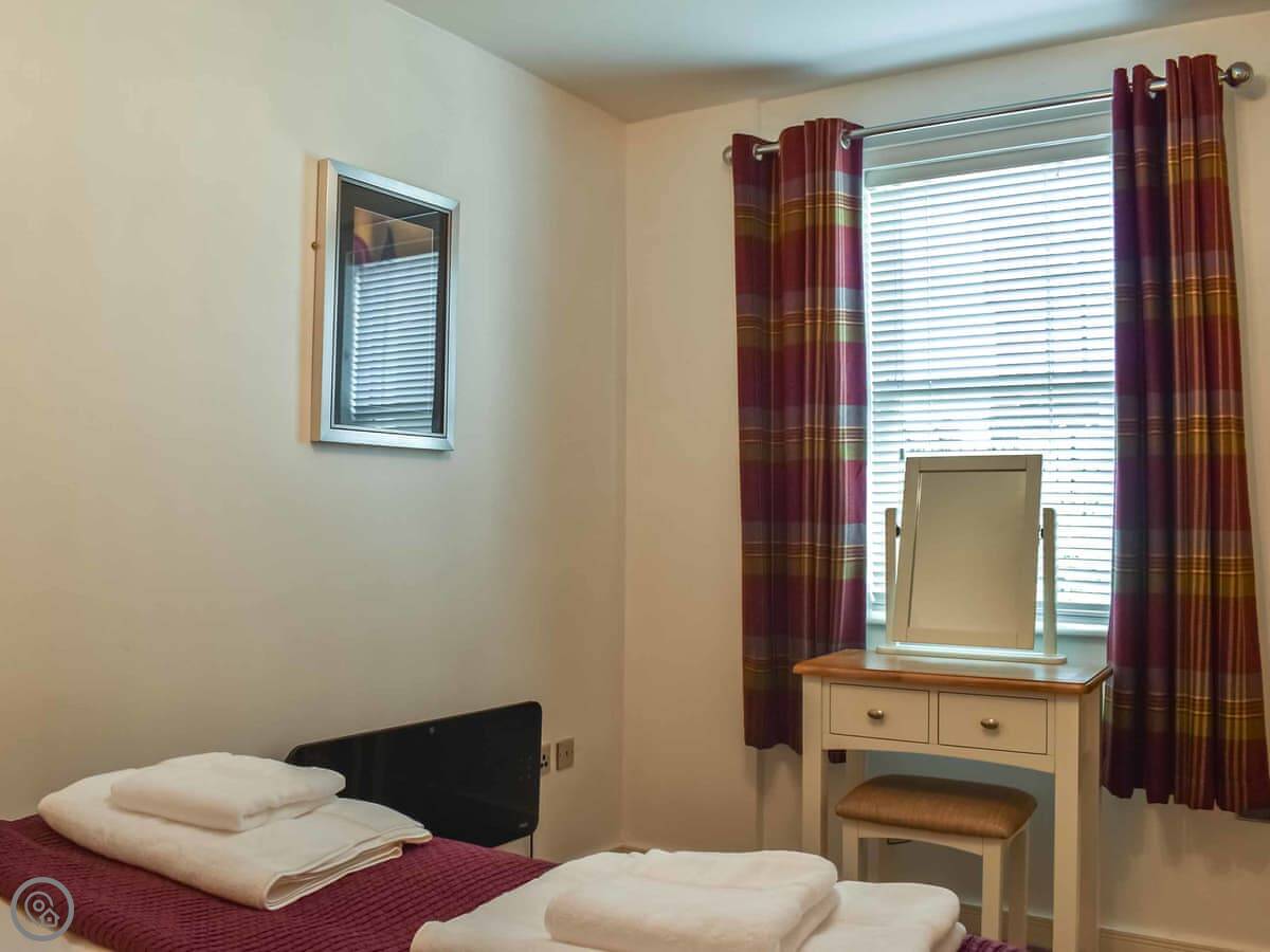 This is the Royal Sands Apartment in Scarborough. It's a ground floor flat that sleeps two people. One bedroom, one bathroom. It's a 4 Star place, so it's comfortable and modern. You can bring one dog.