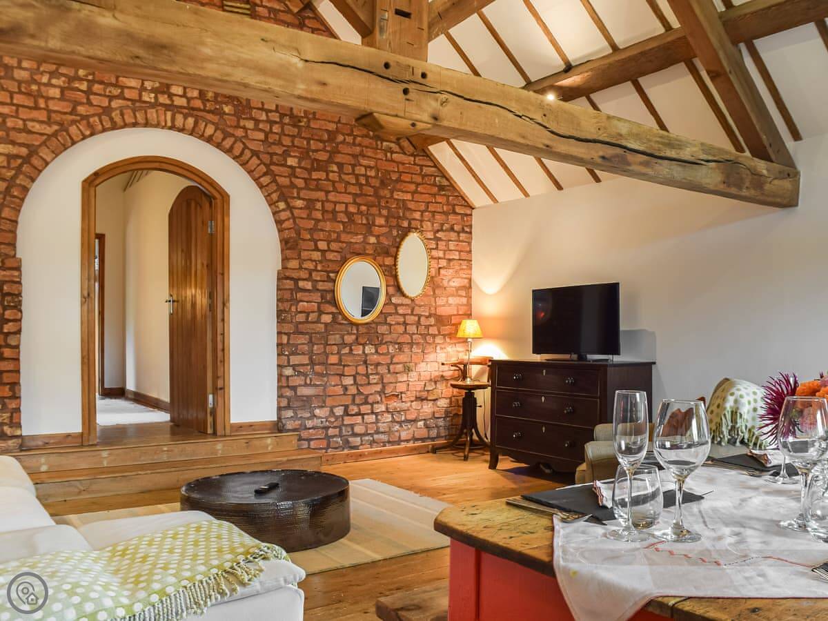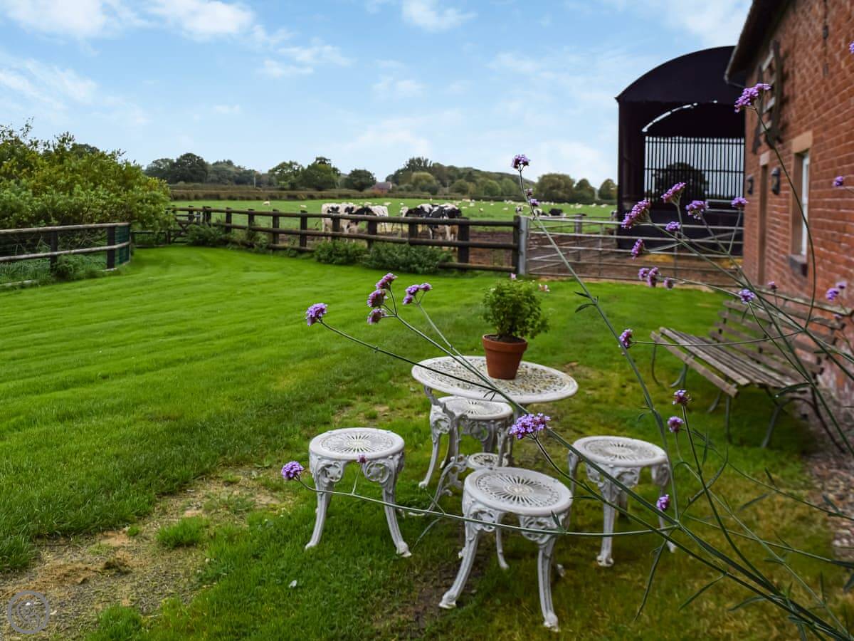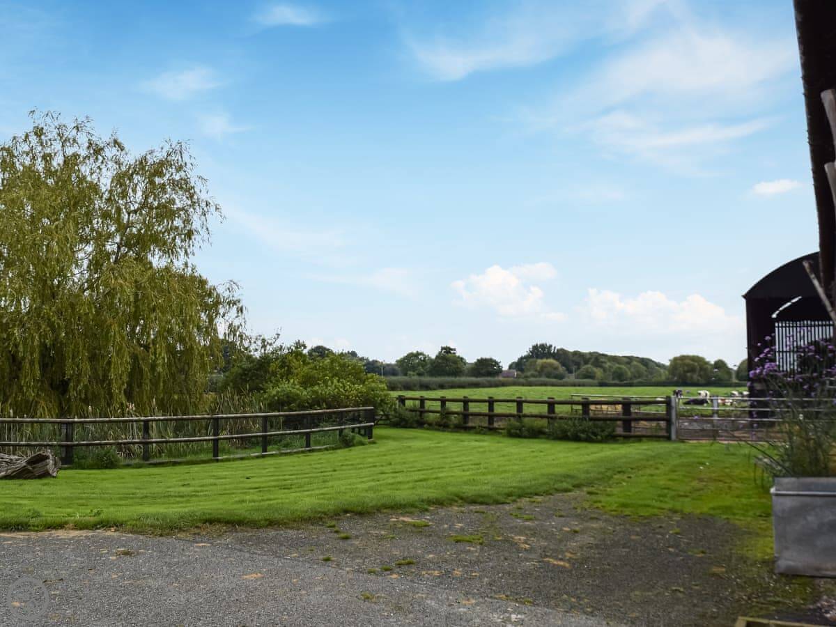 The Barn is on our dairy farm in Ravensmoor, near Nantwich. It's a first-floor apartment in a converted farm building. You'll see and hear the cows. They're usually in the fields right outside.