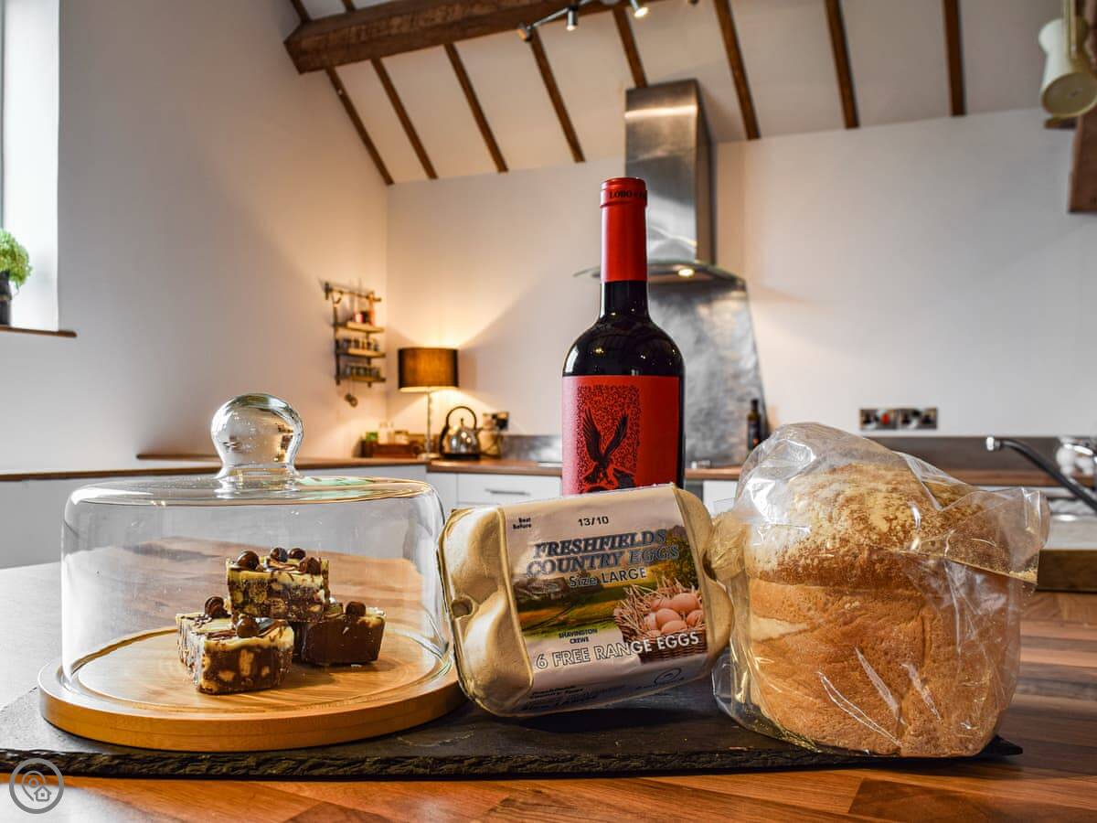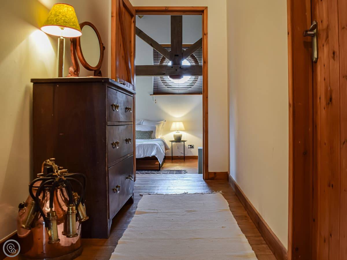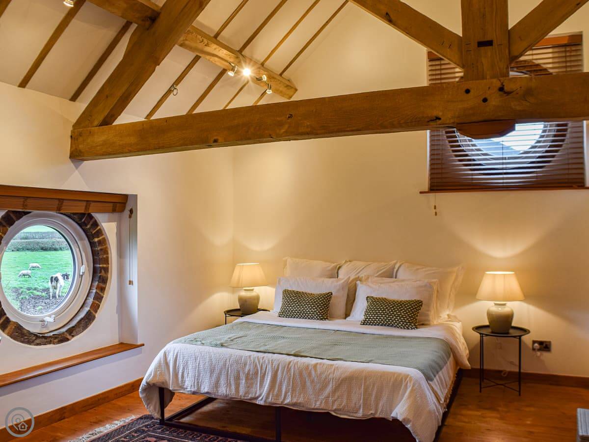 The Barn is on our dairy farm in Ravensmoor, near Nantwich. It's a first-floor apartment in a converted farm building. You'll see and hear the cows. They're usually in the fields right outside.