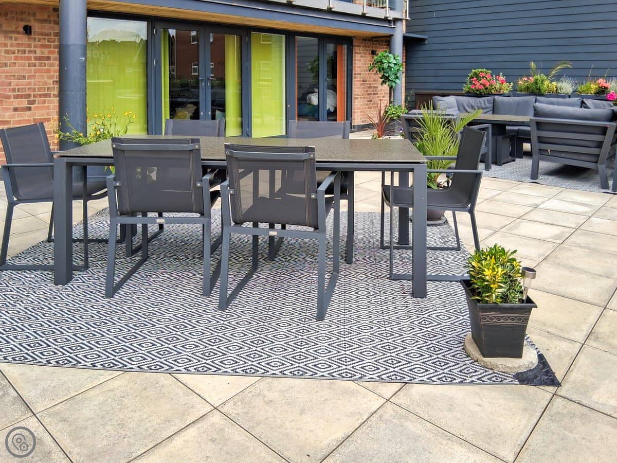 The terrace is the main thing. It's big, it gets the sun, and it's completely private. There's proper sofa seating out there, a table for eating, and a barbecue. You'll probably end up spending most of your time out there if the weather's alright.
