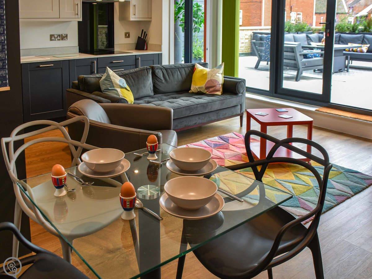 The beach is about a minute's walk away. Sheringham town centre, with the shops and places to eat, is about five minutes on foot. It's a proper seaside town, so there are chip shops, pubs, a few cafes, and some small shops.