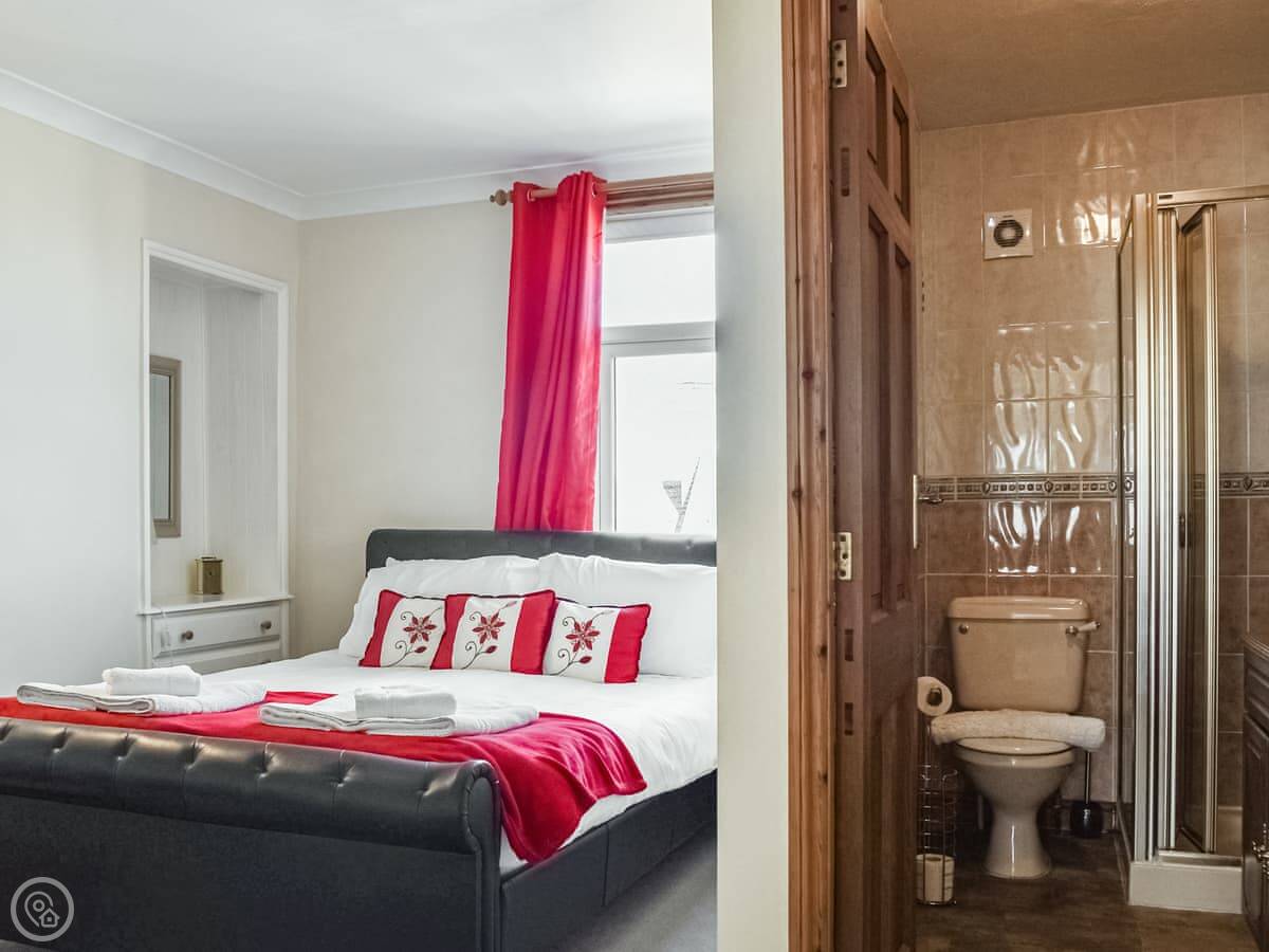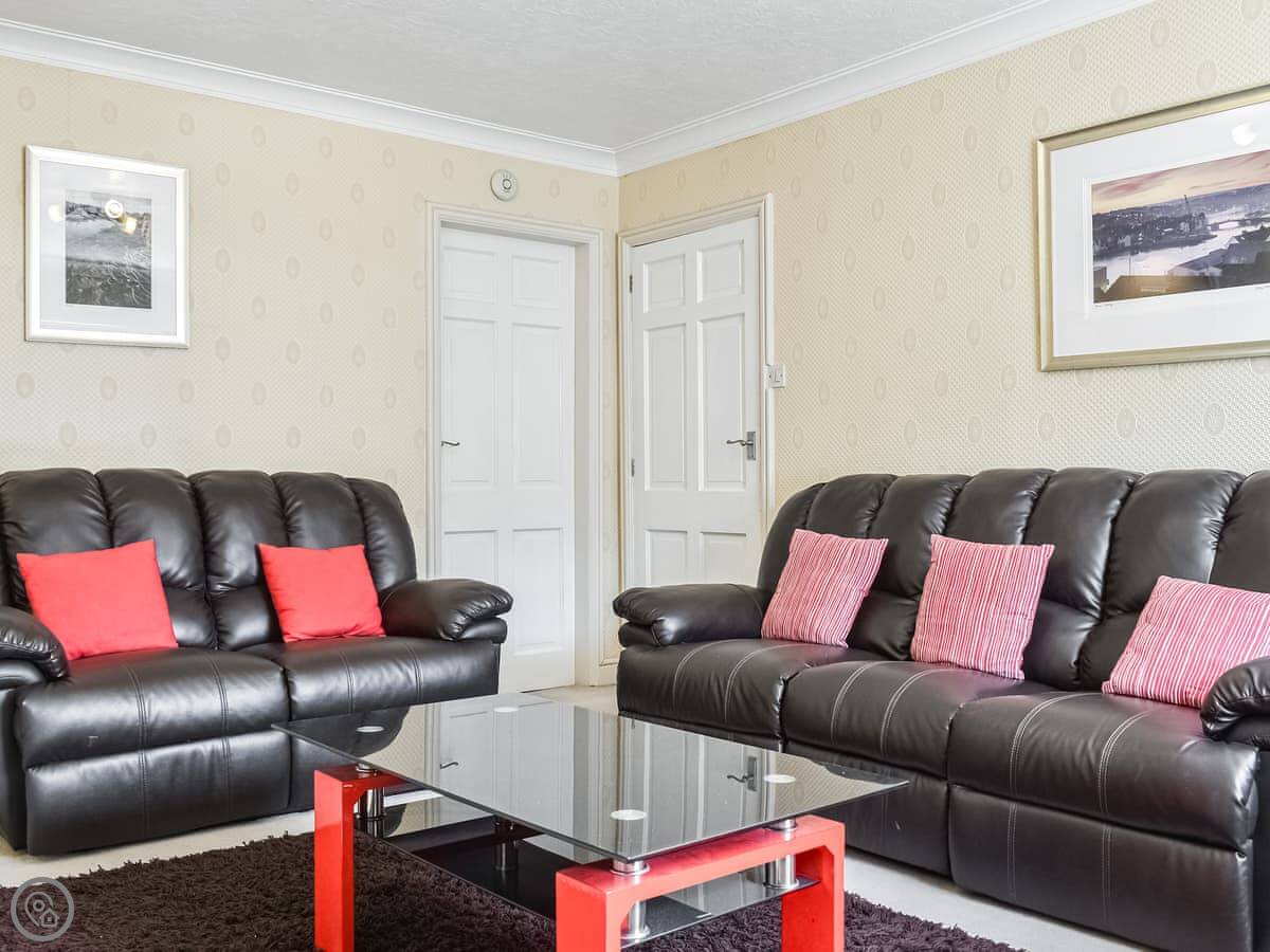 It sleeps four. Two bedrooms, both with their own bathrooms. It's a 3 Star place, so it's clean and tidy but not high-end. The views from the front windows are the main thing. You look straight out at the Abbey and the sea.