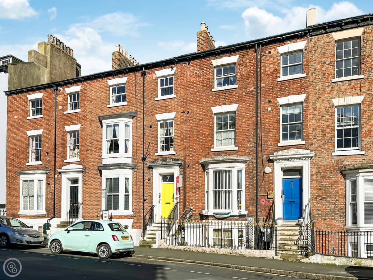 Abbey Vista is an apartment on the second and third floor of a Victorian house in Whitby. It's on a street that's mostly holiday lets and guest houses, so it's busy in summer. It's right in the middle of things.