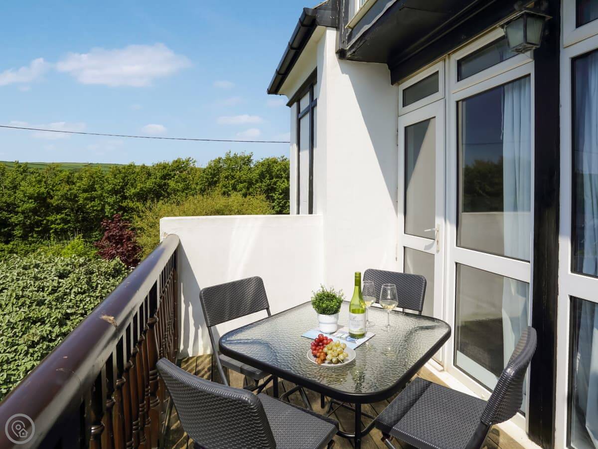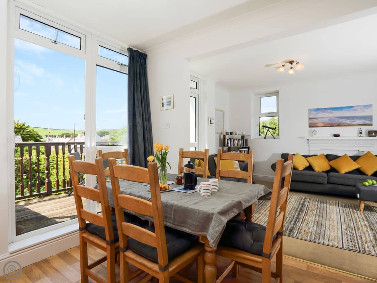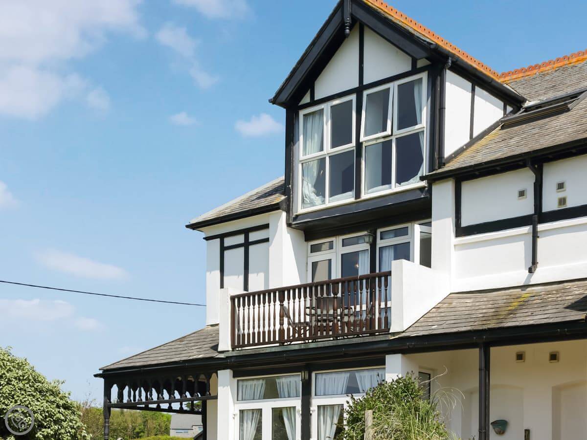 Miriam’s is on the first floor of a building in Croyde. It’s a flat, an apartment. You get a good view of the sea and the dunes from your own balcony.