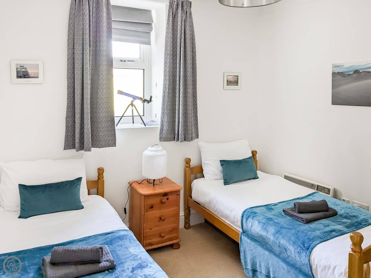 It sleeps six. Three bedrooms, two bathrooms. One is an en-suite shower room off the main bedroom. It’s a 3 Star place, so it’s clean and functional, not luxurious.