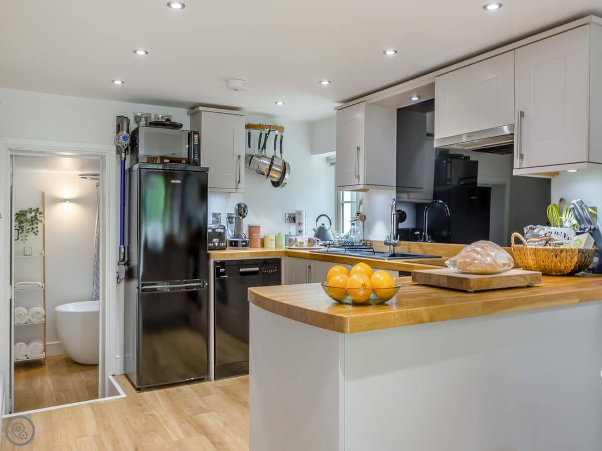 It's a comfortable place. There's a wood burner, a smart TV, WiFi, and a washing machine. All the bedding and towels are included. We accept up to two dogs.