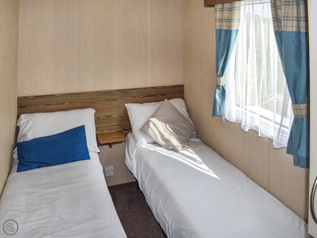 It sleeps six in three bedrooms. There's one bathroom. It's 3 Star rated, which means it's clean and has what you need but isn't luxurious.