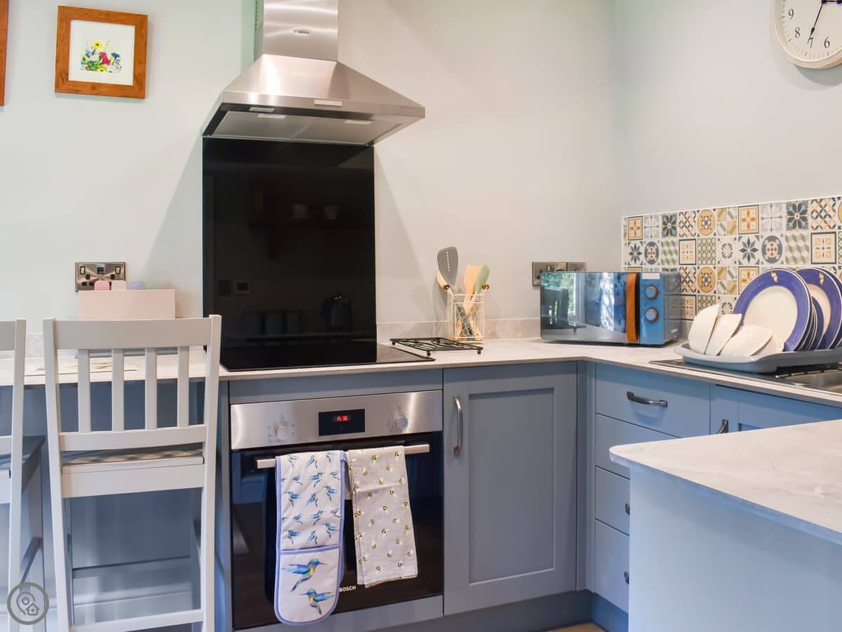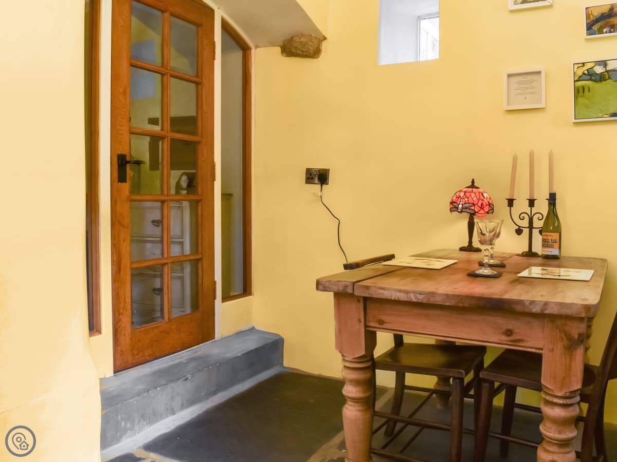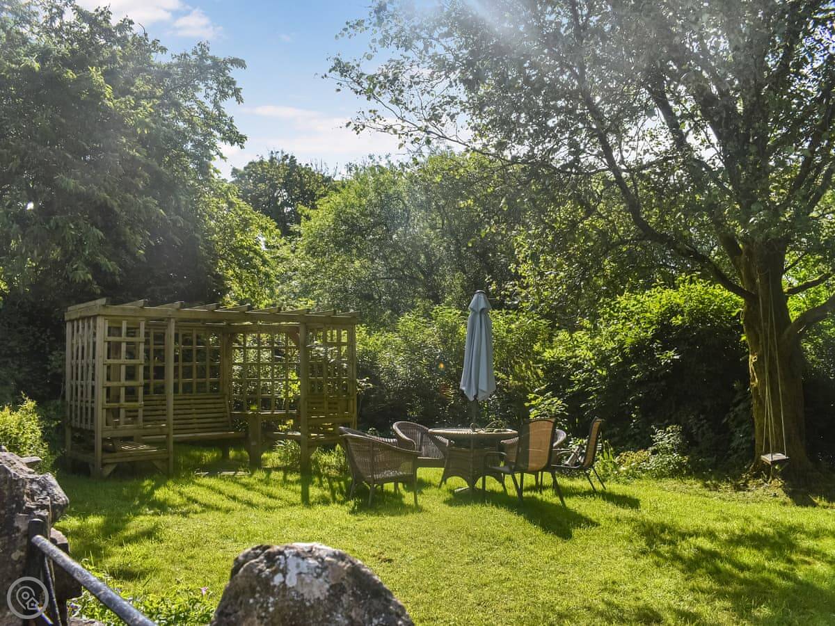 Outside, there's a private, enclosed garden with a table and chairs. There's a hammock too. A public footpath runs along the river right next to the garden, so you can step straight out for a walk.