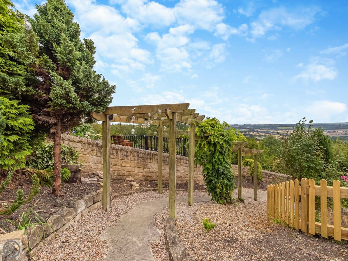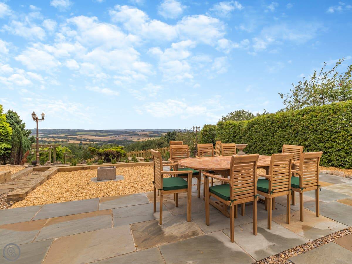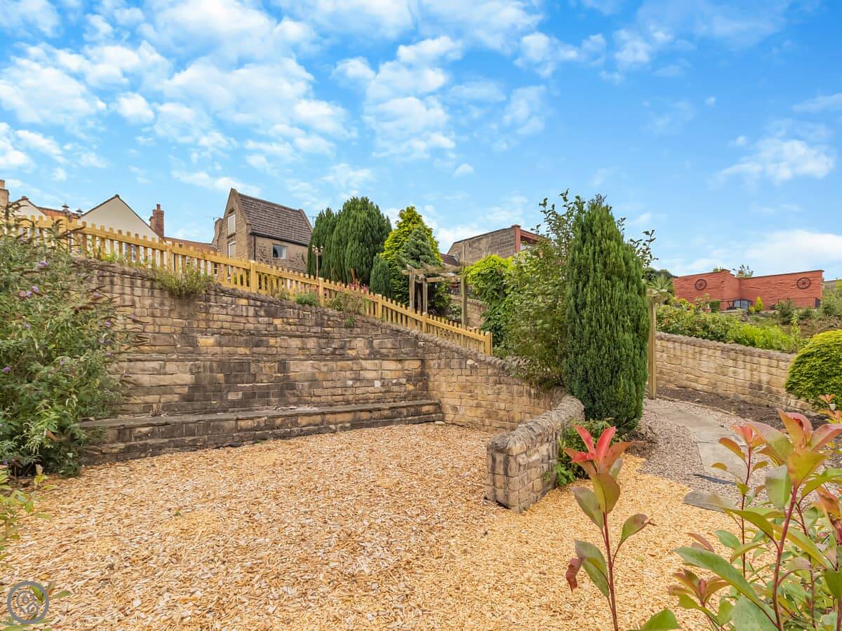 Out the back is a terraced garden with views over the fields. It's a good spot. You can park about four cars on the street outside.