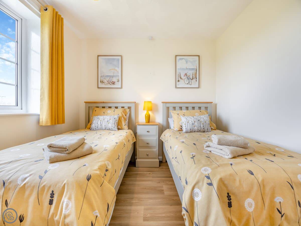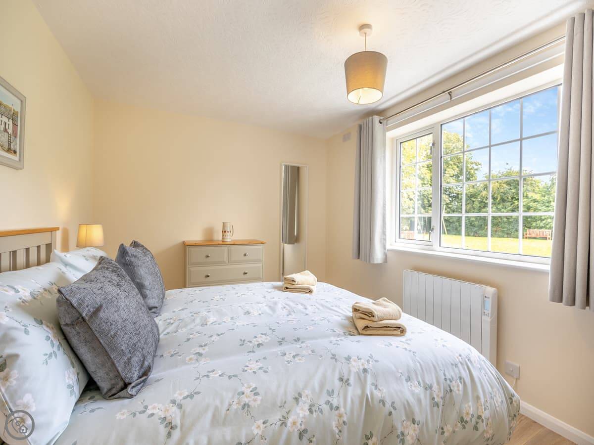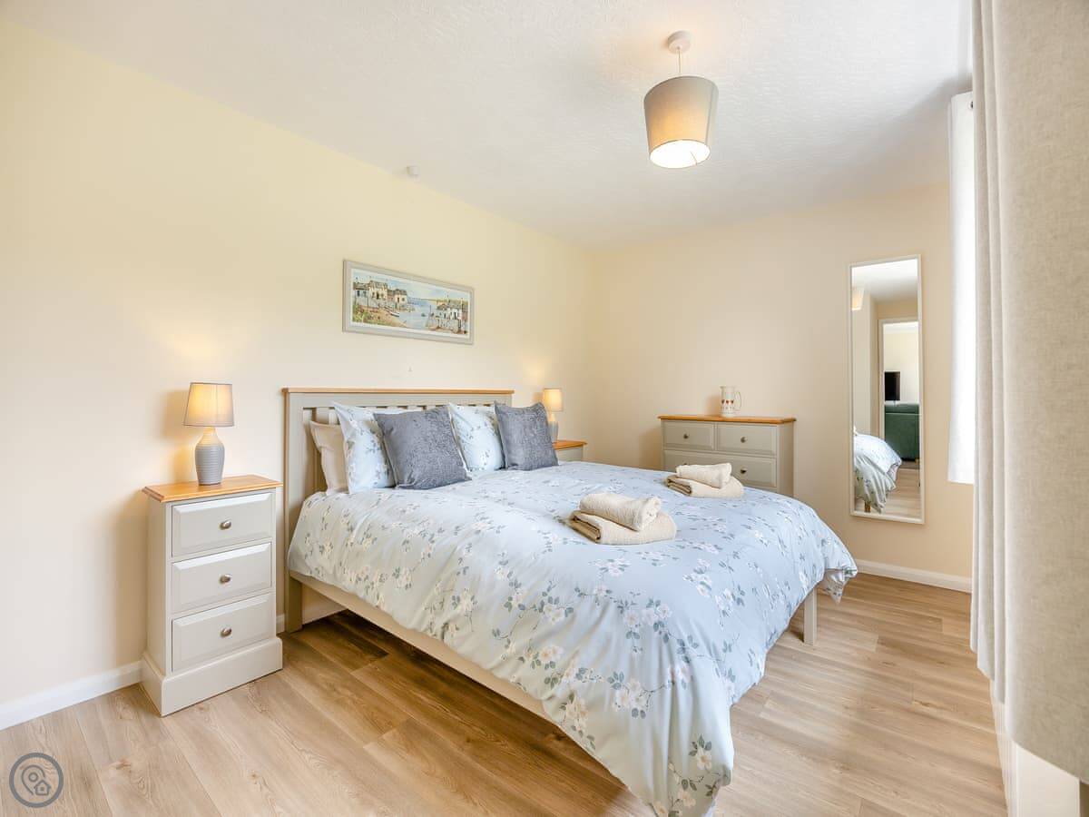 It sleeps four. Two bedrooms, one is a double, the other has twin beds. There's one bathroom. It's got a 4 Star rating. It's simple but well done. You can bring one dog.