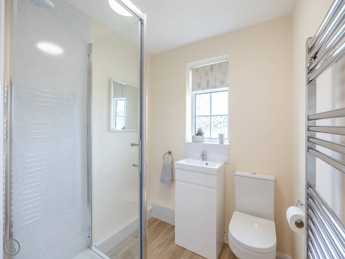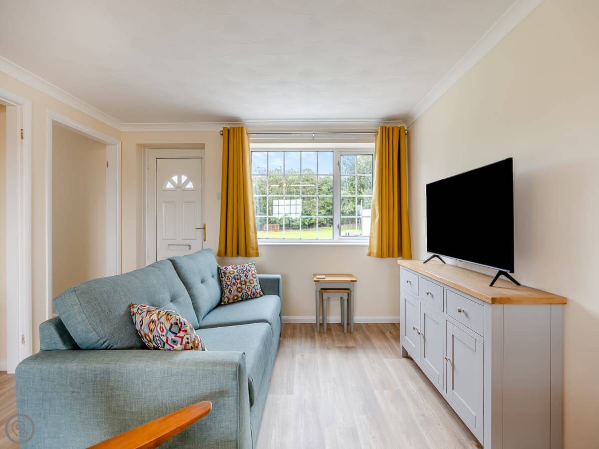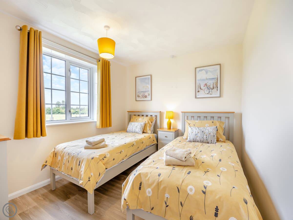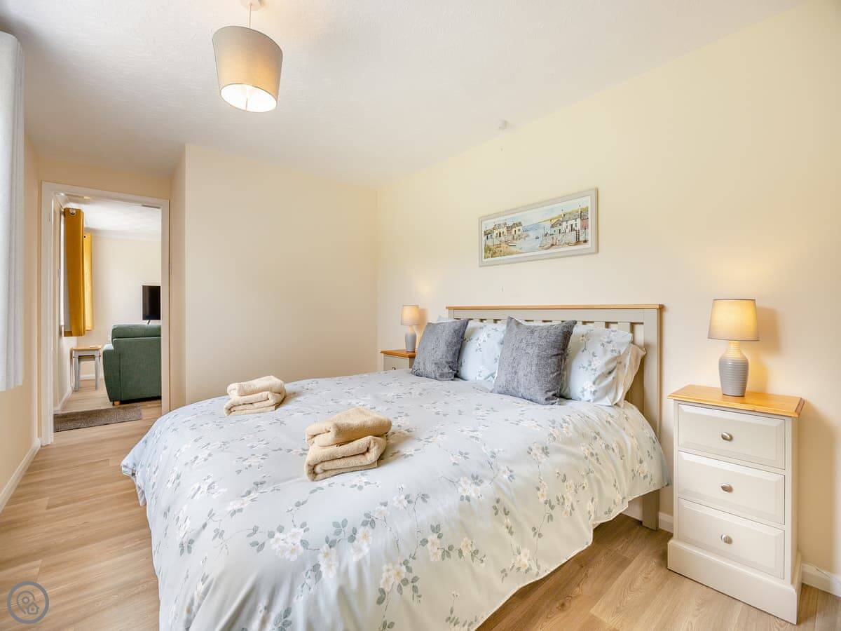 It sleeps four. Two bedrooms, one is a double, the other has twin beds. There's one bathroom. It's got a 4 Star rating. It's simple but well done. You can bring one dog.