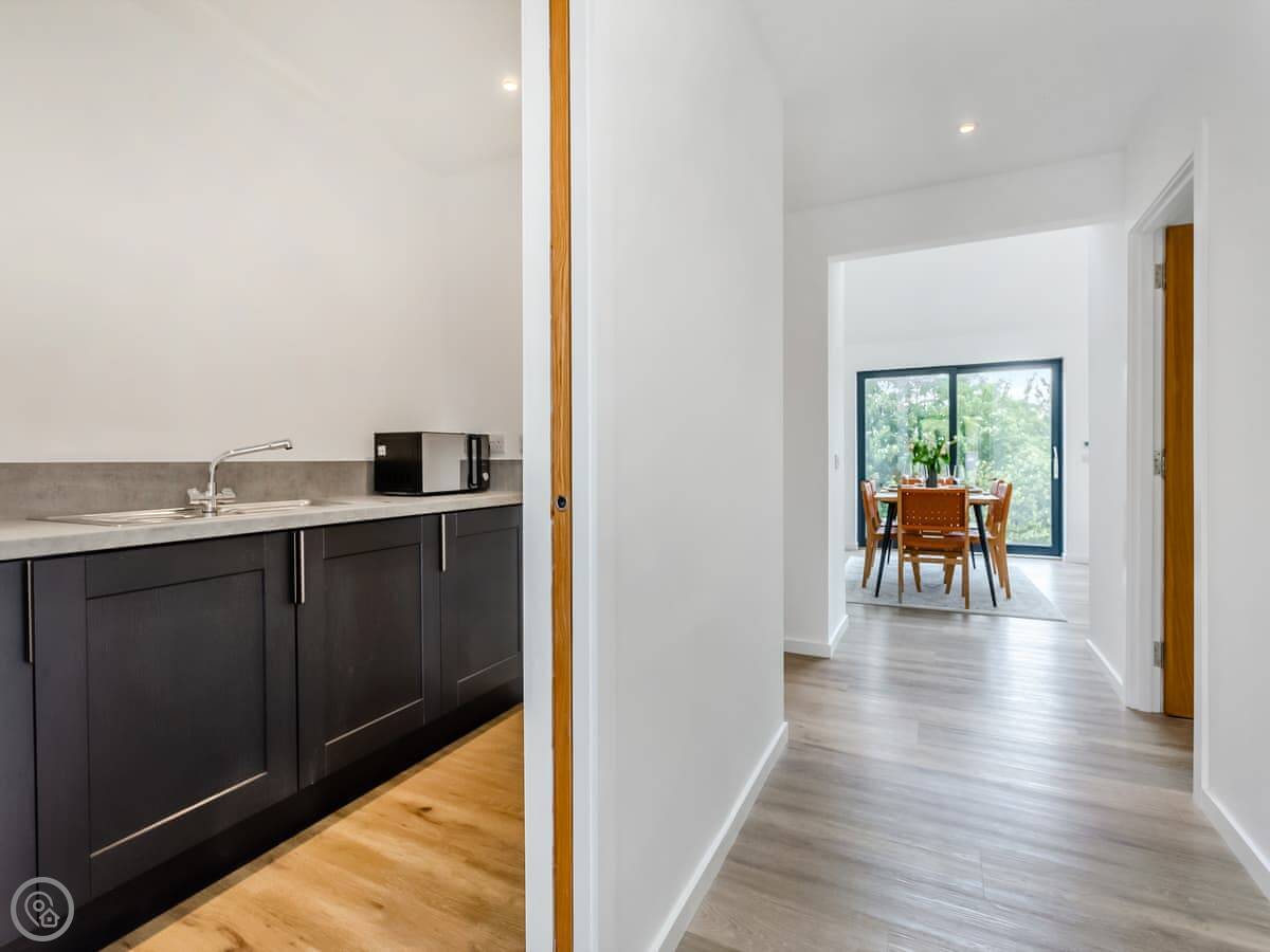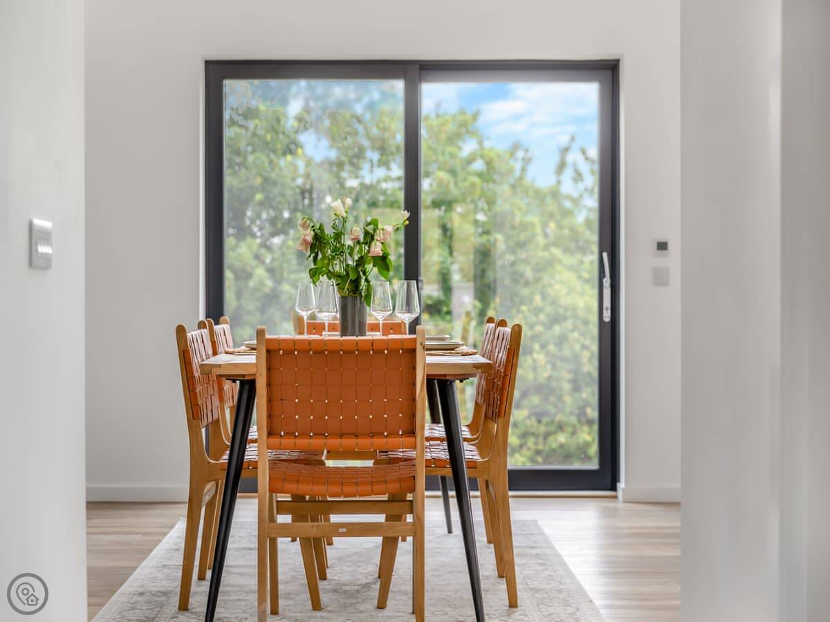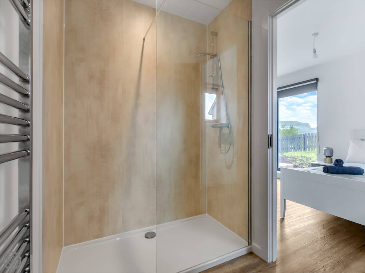 You get the place to yourselves, with a garden and parking. The main living area is open plan. Patio doors lead out to the patio from both the lounge and the dining area. It has underfloor heating, which is good for Skye. It's got a 4 Star rating, which means it's well-equipped and comfortable.