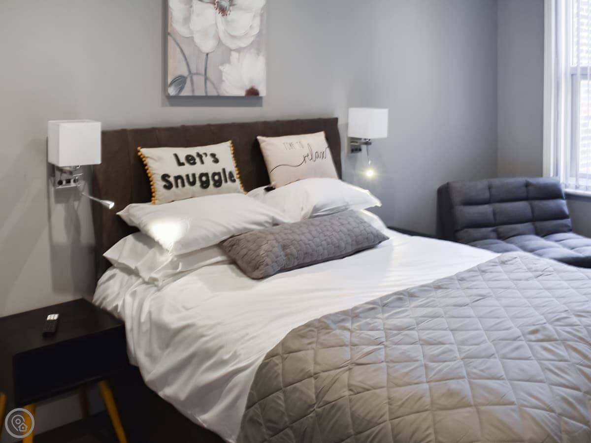 Folkestone Central is a three bedroom flat on the first floor. It's about three minutes walk from the station, which is handy. It sleeps six and has two bathrooms.