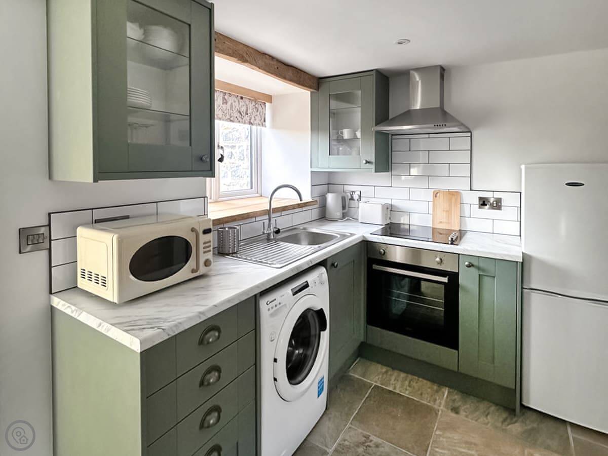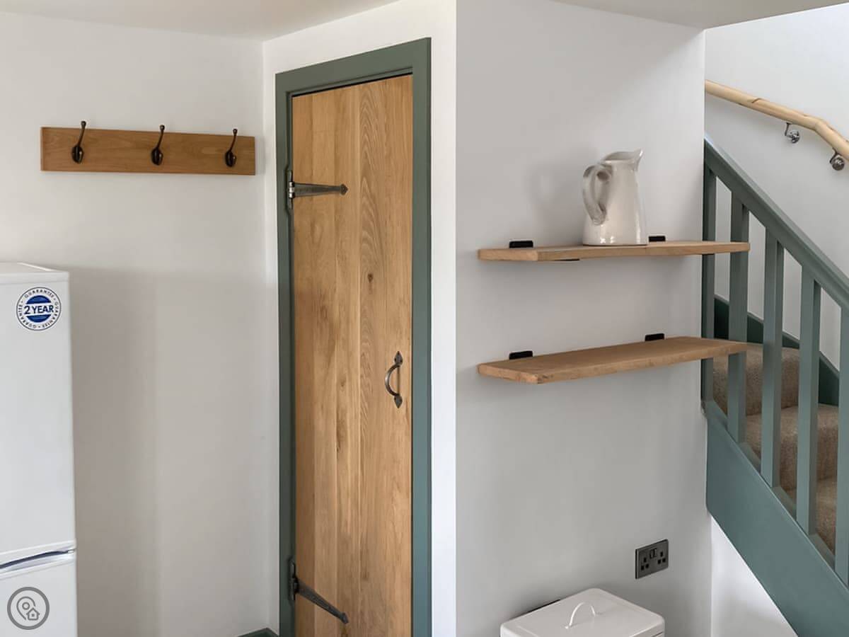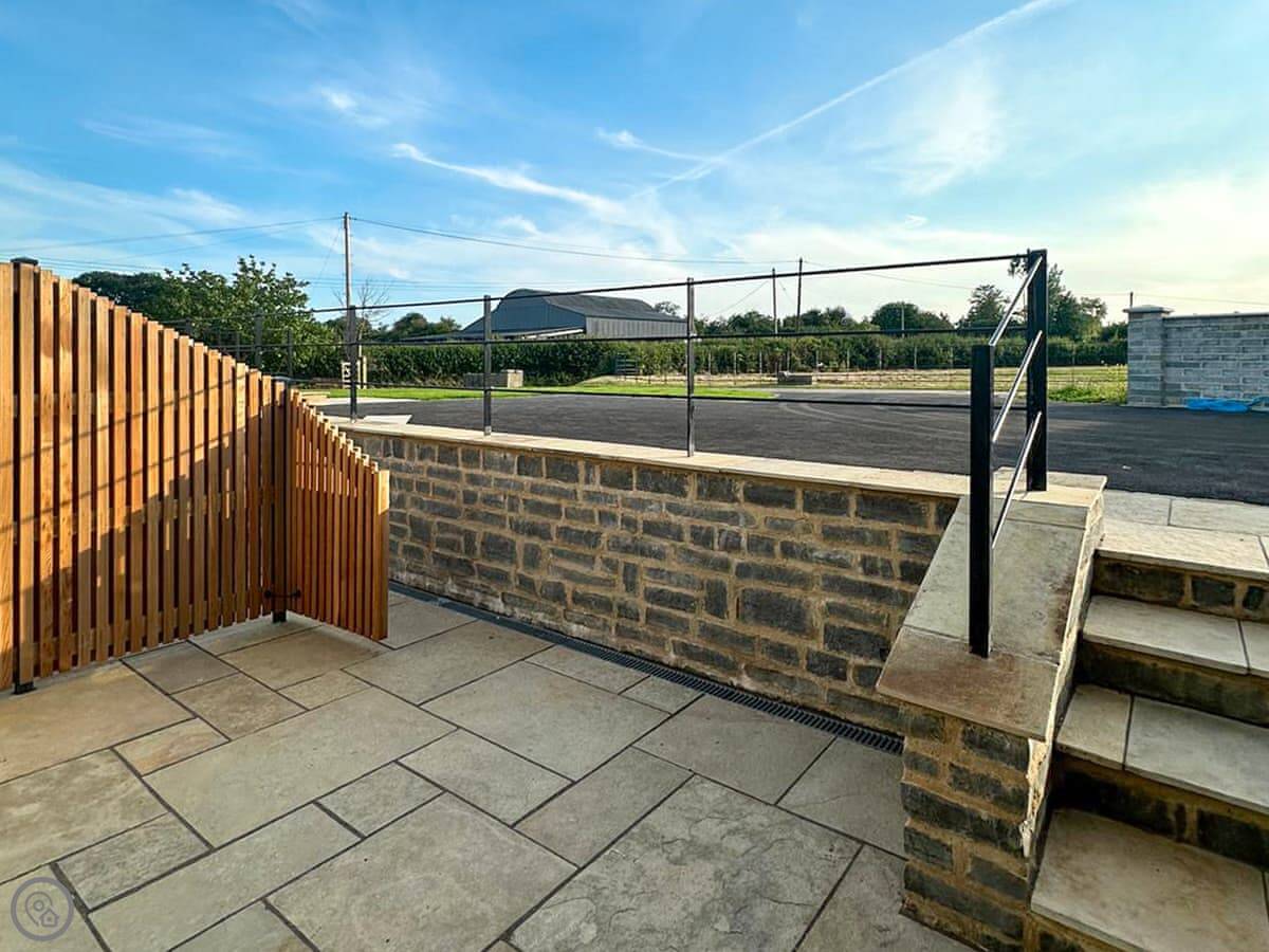 You’ve got your own patio area with a table and chairs. It looks south over the fields. There’s parking right next to it, and an electric vehicle charger if you need one.