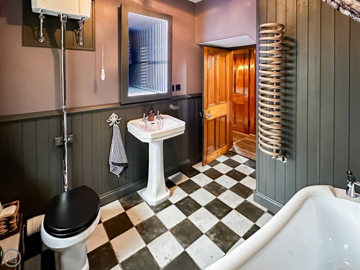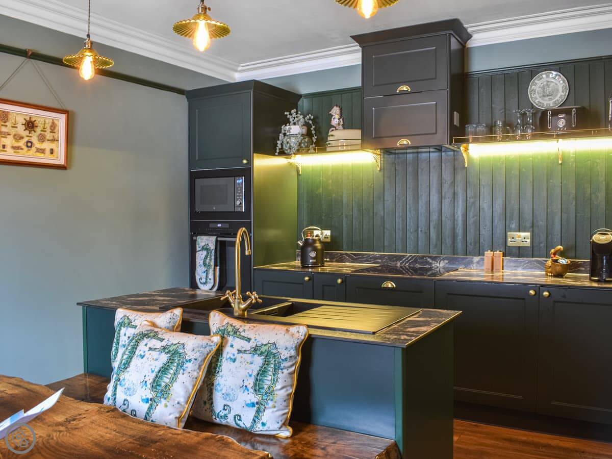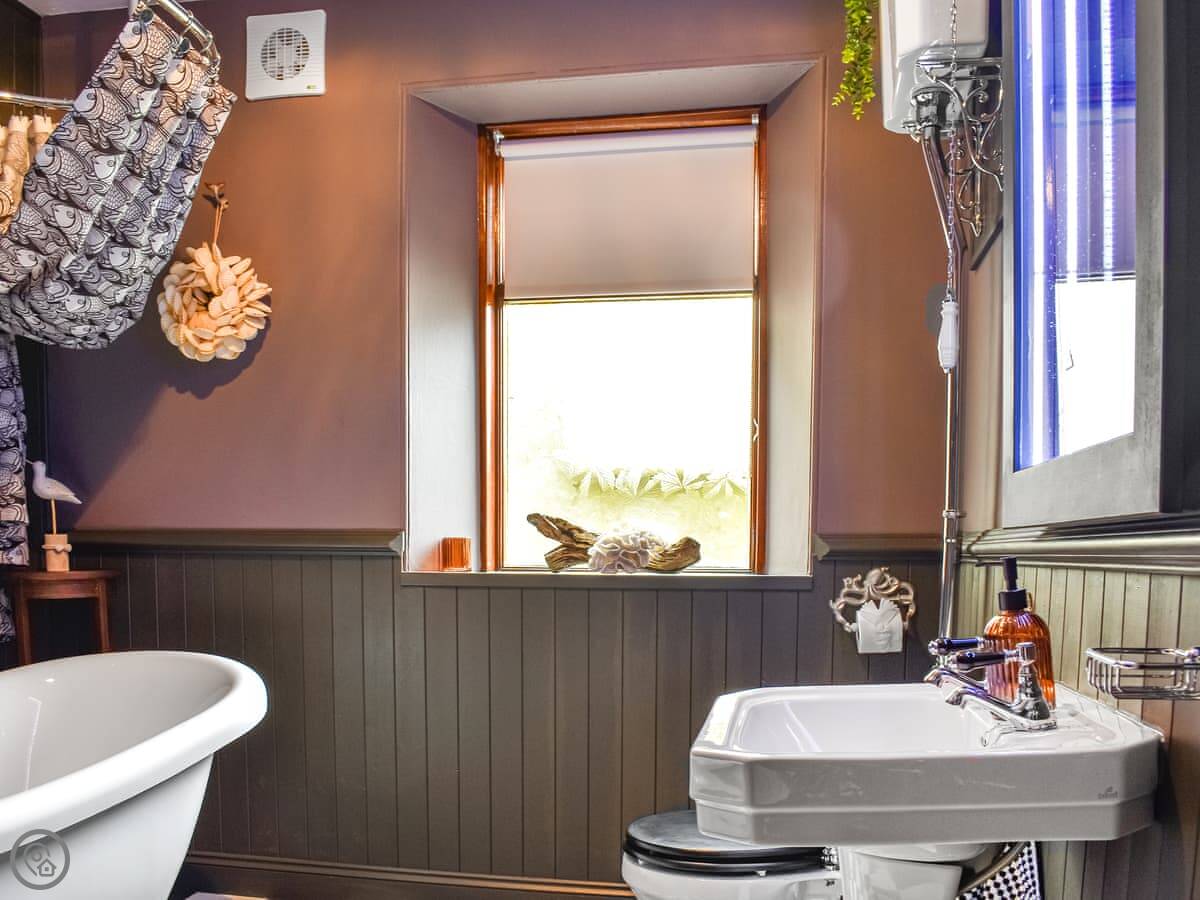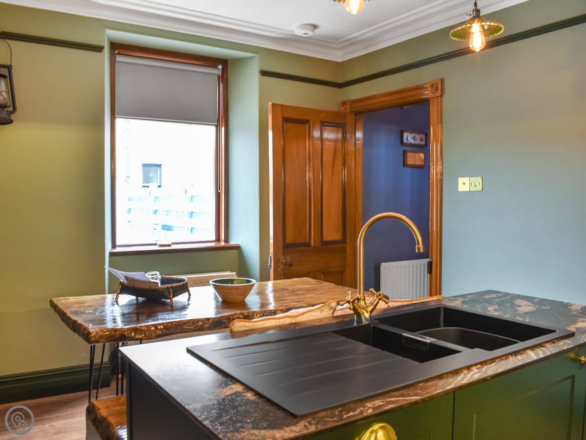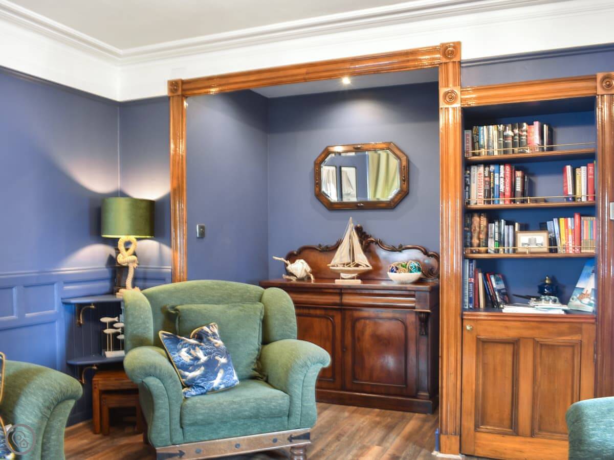 It sleeps four in two bedrooms. There's one bathroom. It's got a 5 Star rating. It's been done up carefully. The woodwork, like the doors, is original. The paint colours are period-correct from a company that supplies film sets.