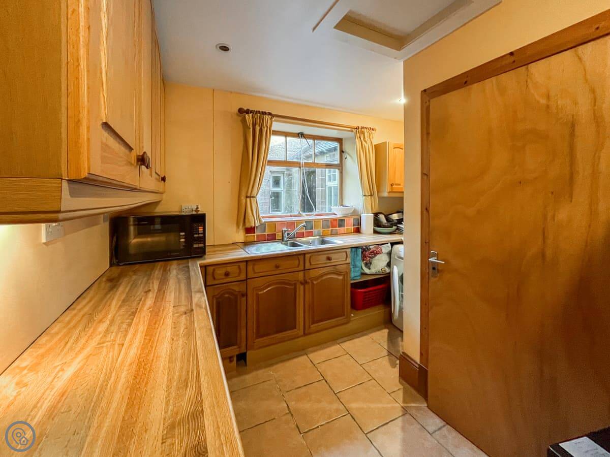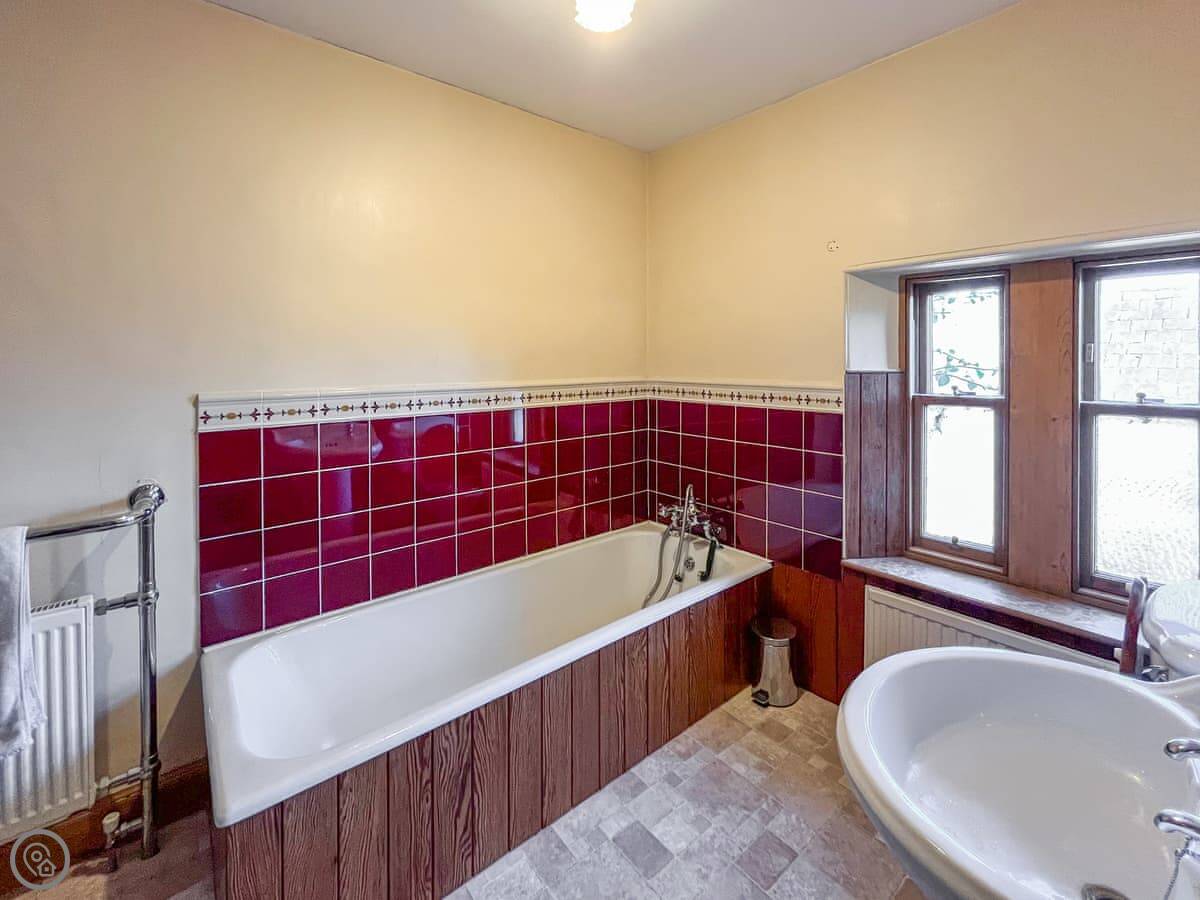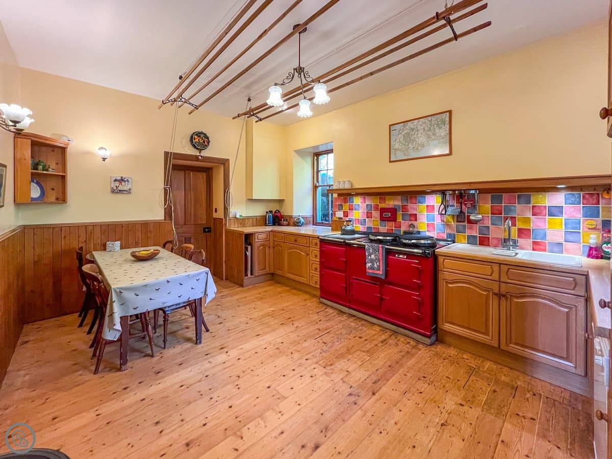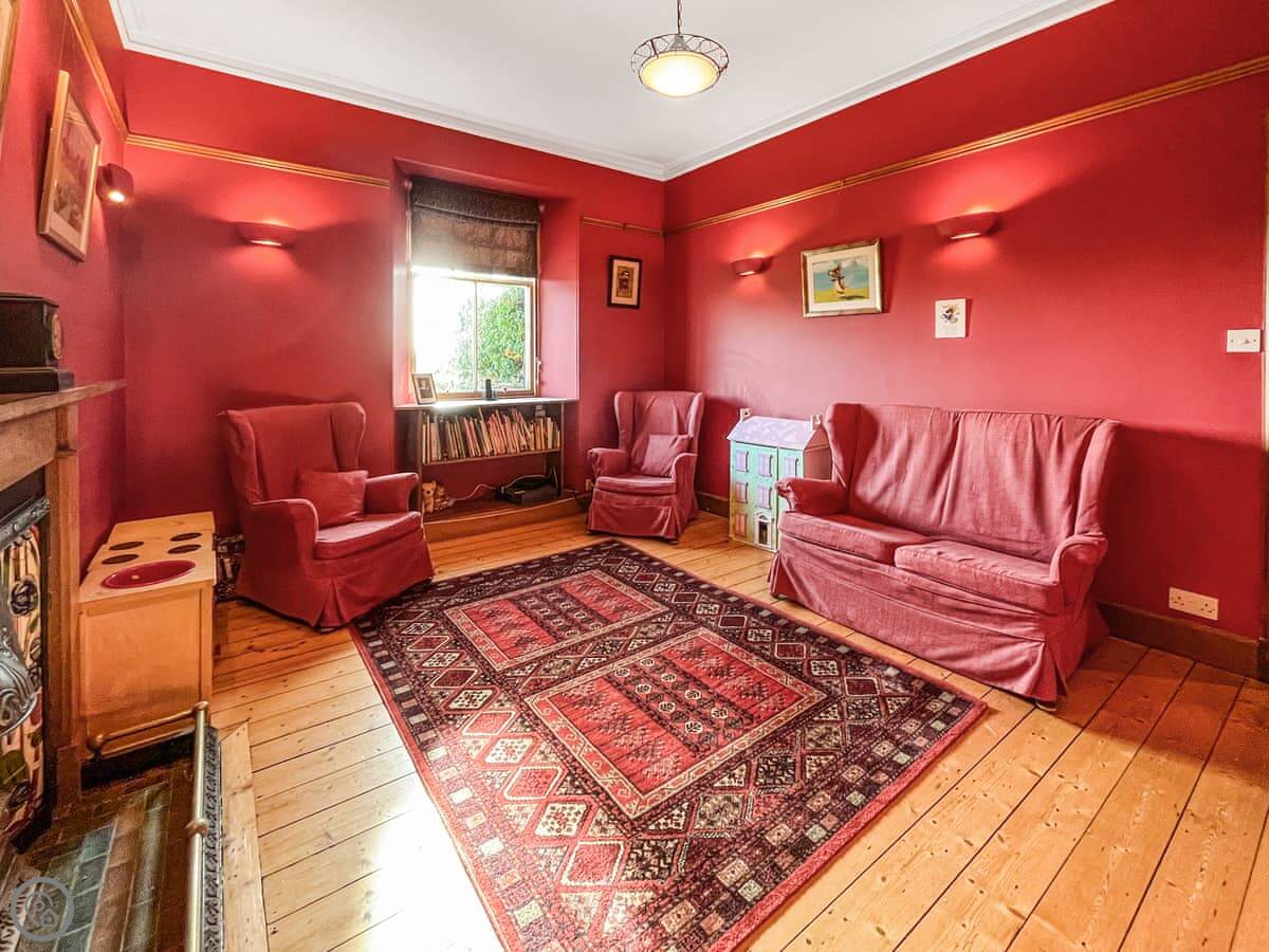 The kitchen has an Aga, which is great in winter. There's a utility room with a washing machine. The main living room is big, with a woodburning stove and good views over the garden. There are two other small sitting rooms too, which is handy if people want some quiet. The dining room is a good size for everyone to eat together.