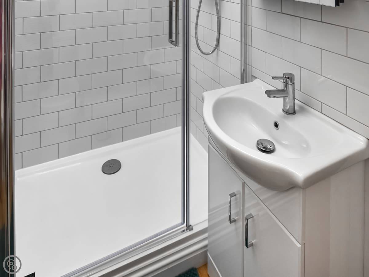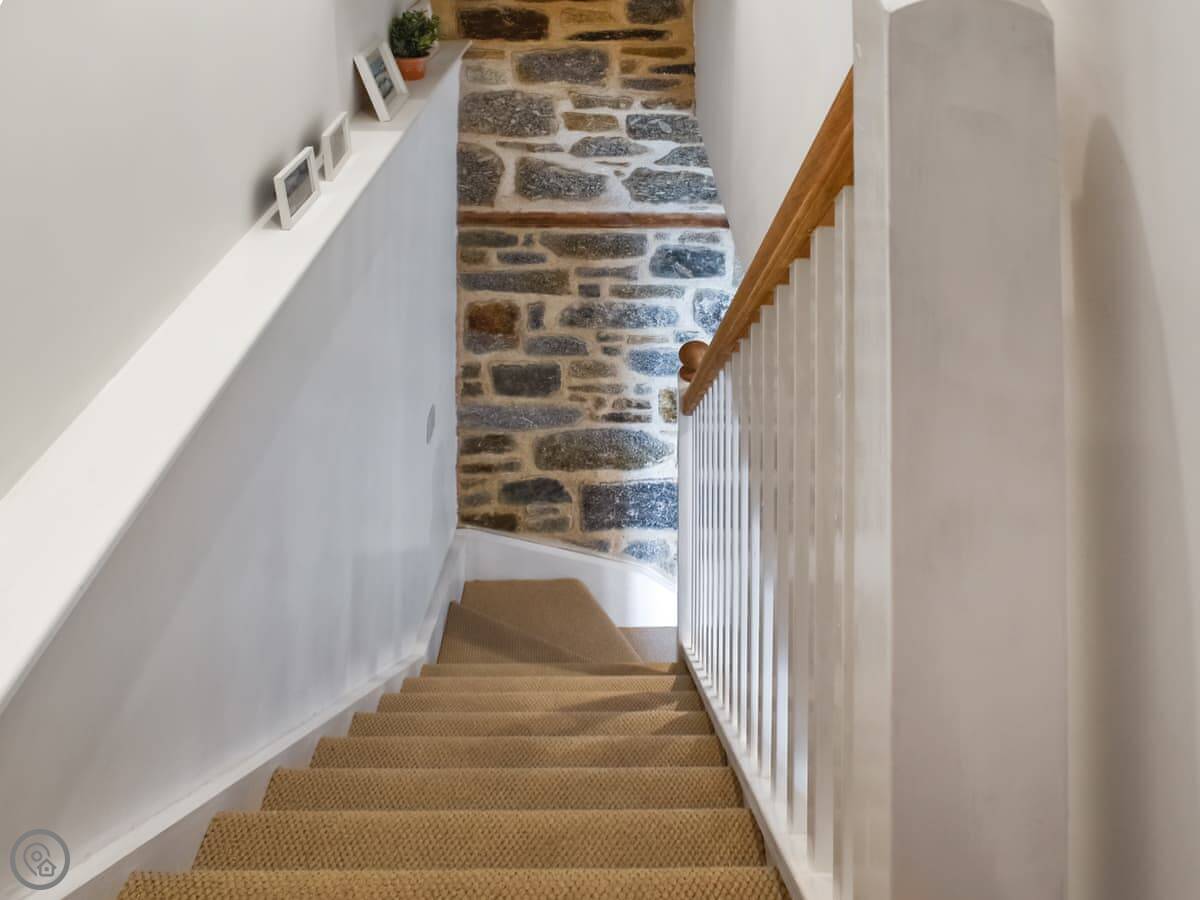 The stairs are quite steep, a typical cottage staircase. The bedroom and en-suite shower room are upstairs.