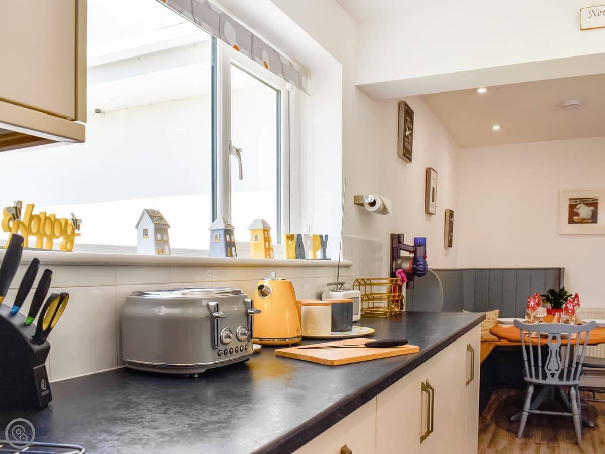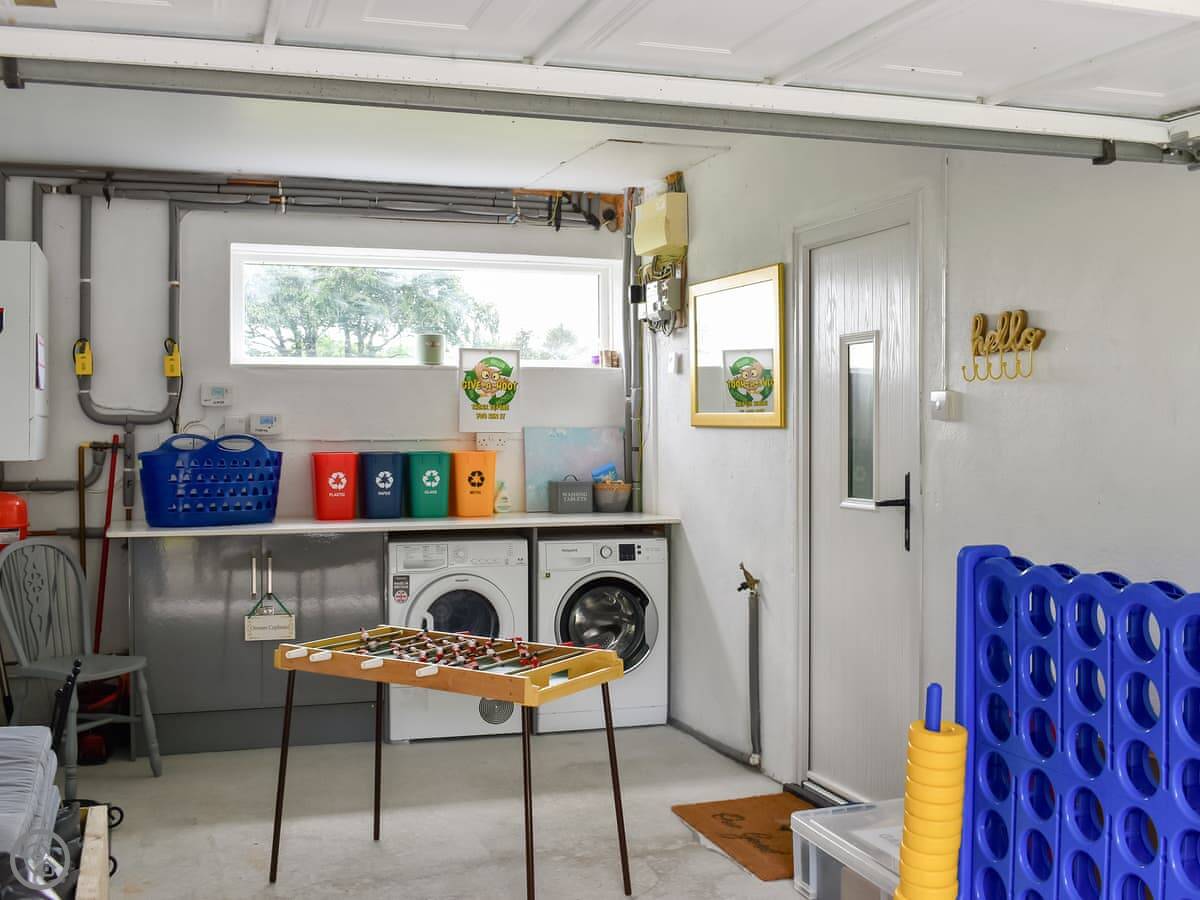 The kitchen has what you need. There's a dishwasher and a washing machine. The living room has a smart TV. The garage is set up as a games room with some outdoor games, and there's space in there to store bikes if you bring them.