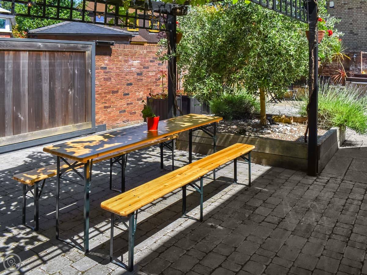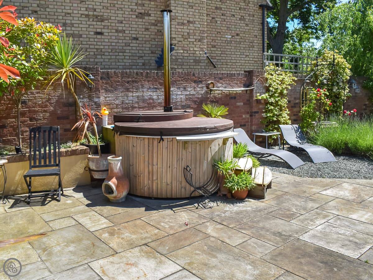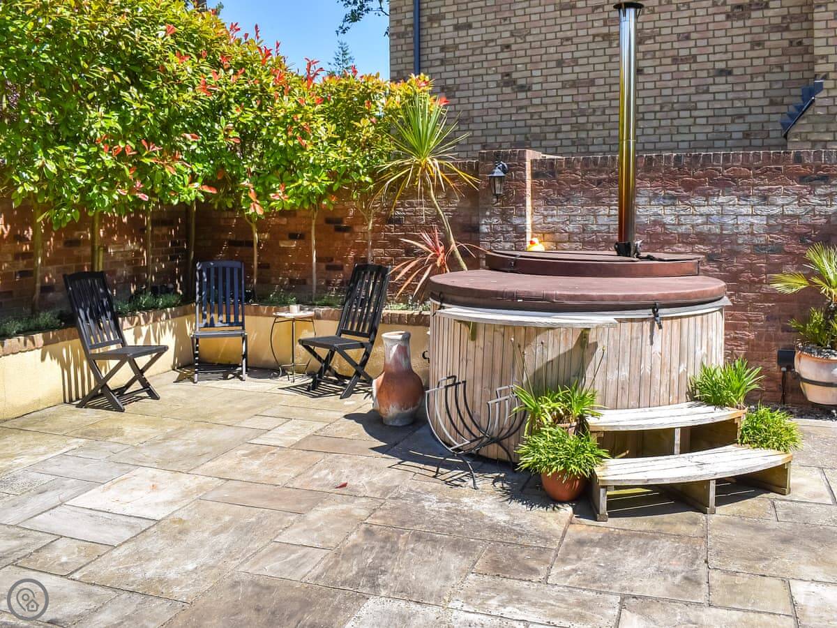 Out the back there's a walled garden. It's private. There's a hot tub and a barbecue area. You can park on the drive.
