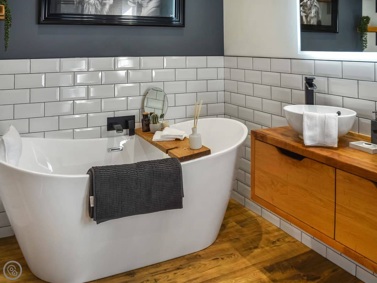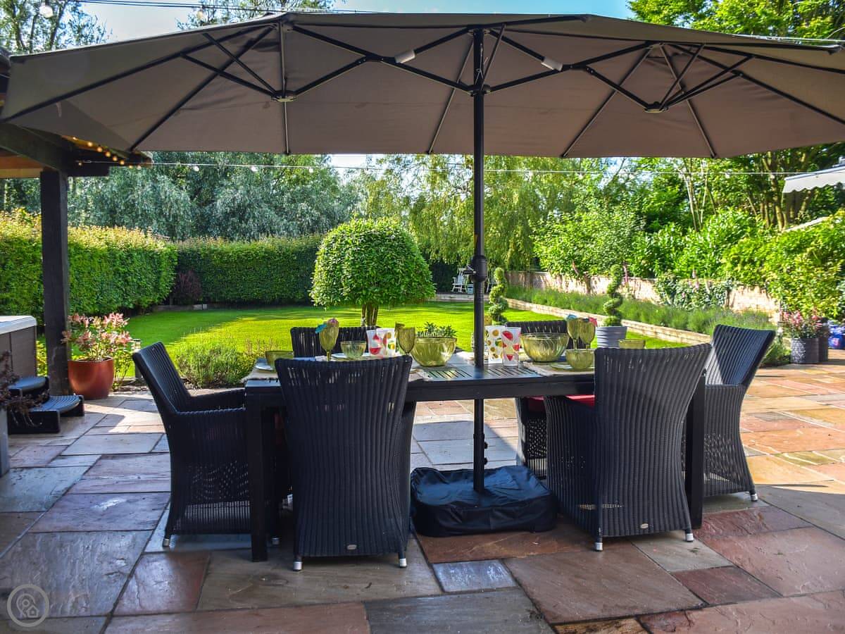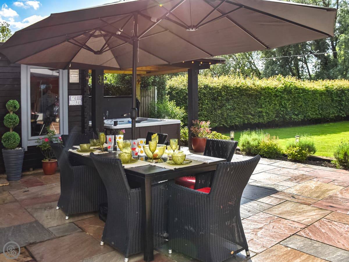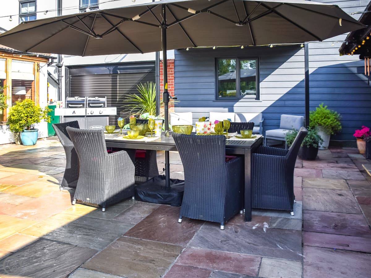 You get a big garden that's fully enclosed, which is handy if you've got kids or dogs. Pets are welcome, up to three. There's a hot tub out there and a patio area with a barbecue. Parking is on site and there’s an electric car charger.