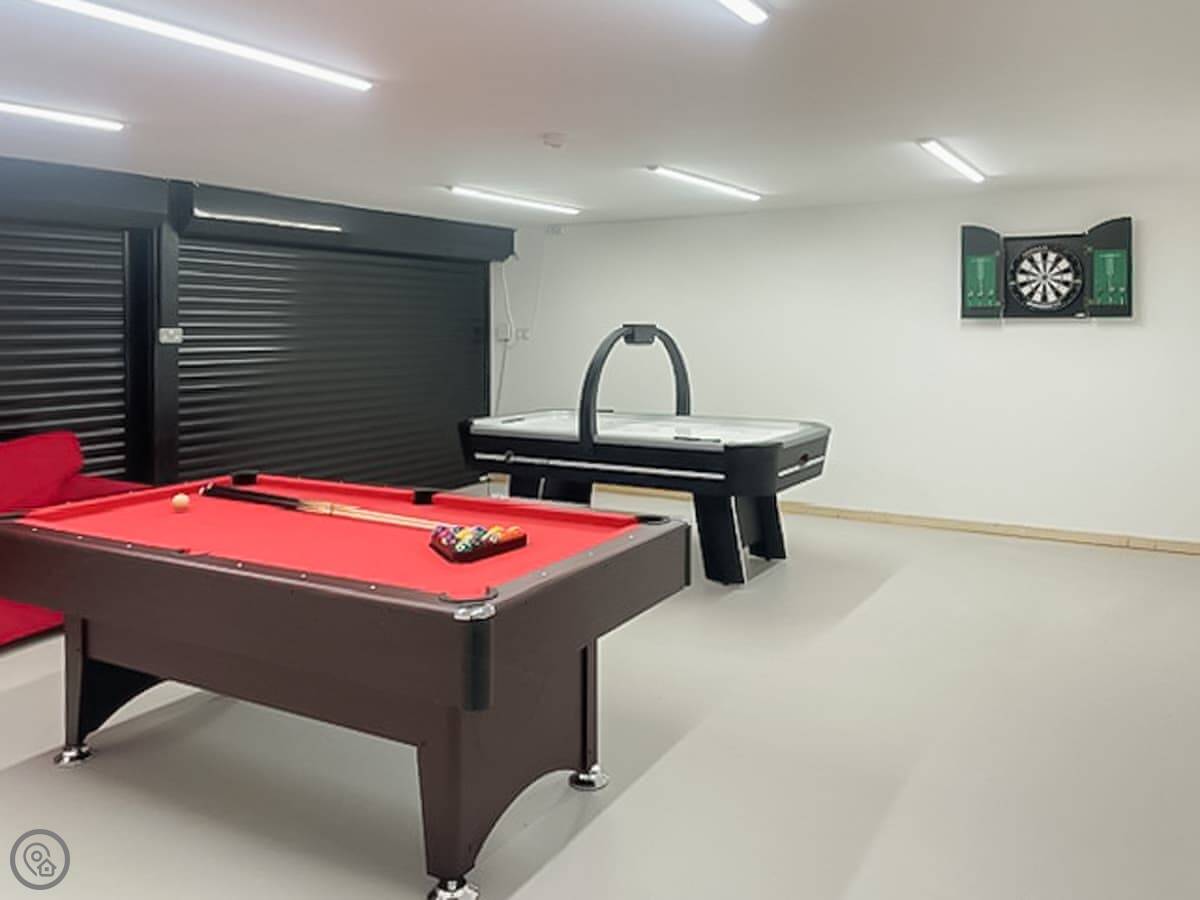 Inside, it's open plan on the ground floor. The kitchen has a dishwasher and there's a washing machine too. Bedding and towels are included. There's a games room, which is a bonus if the weather turns.